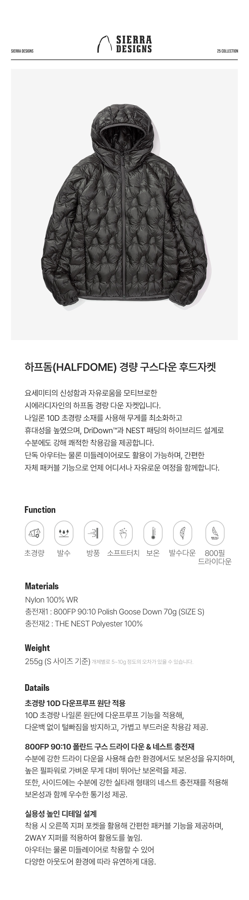 [6% 적립] SIERRA DESIGNS W Halfdome Lightweight Goose Down Hooded Jacket Black