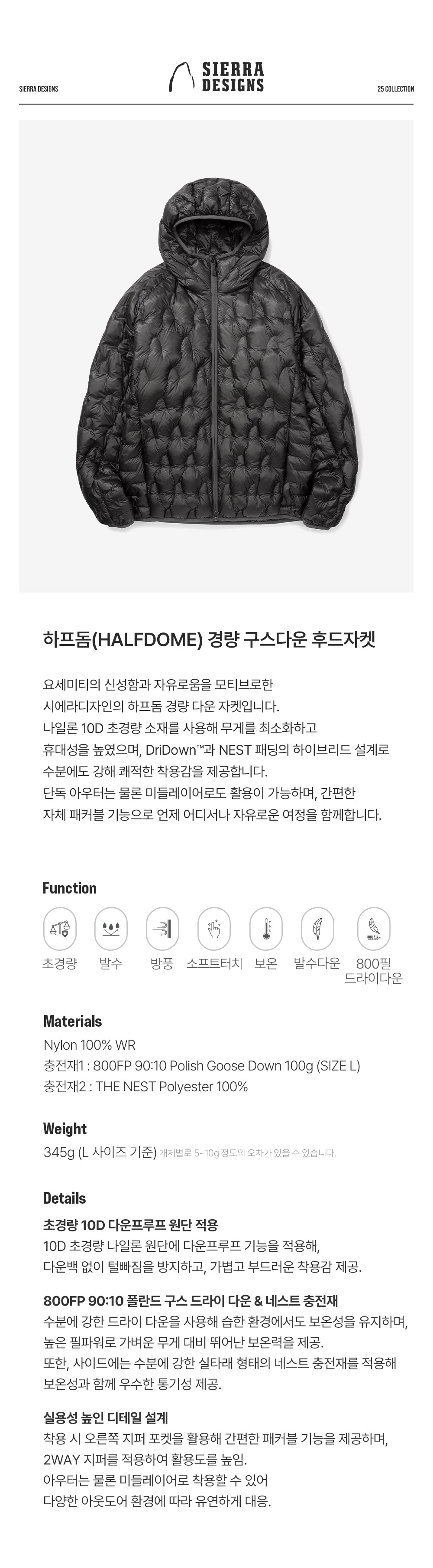 시에라디자인 하프돔 경량 구스다운 후드자켓 블랙