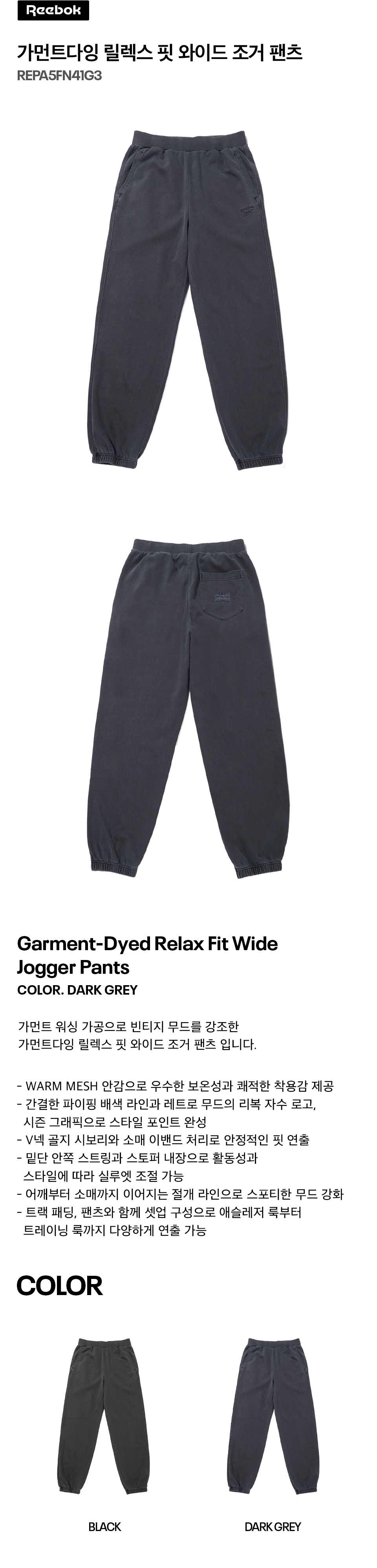 리복 가먼트다잉 릴렉스 핏 와이드 조거 팬츠 다크 그레이