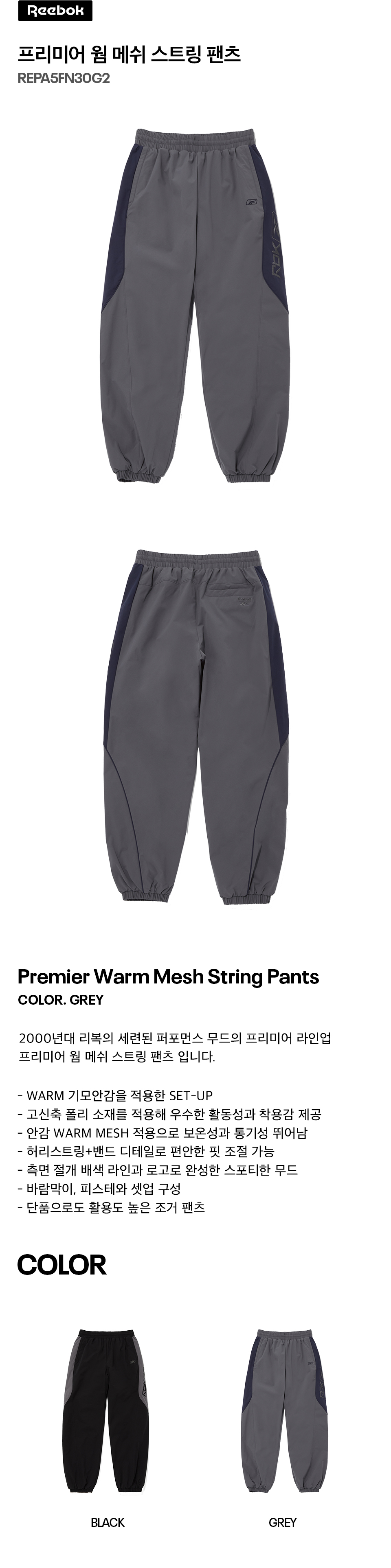 리복 프리미어 웜 메쉬 스트링 팬츠 그레이