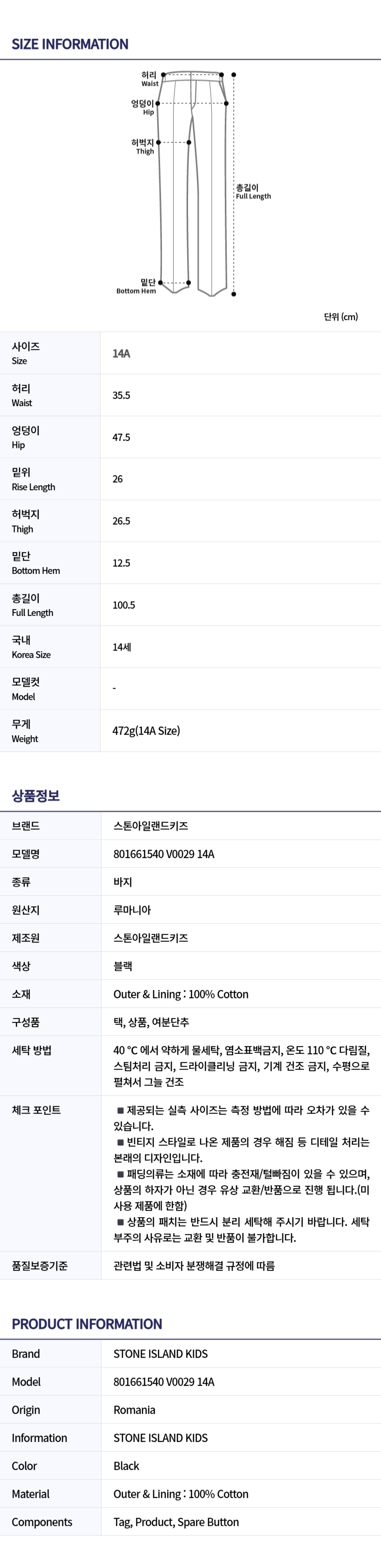 [15% 쿠폰] (Kids) 스톤아일랜드 카고 바지 블랙