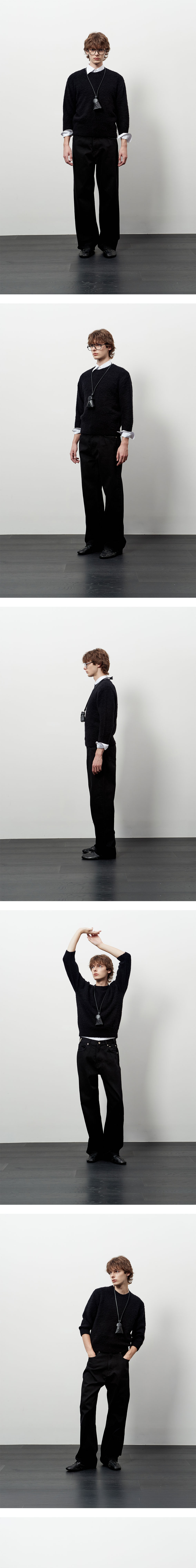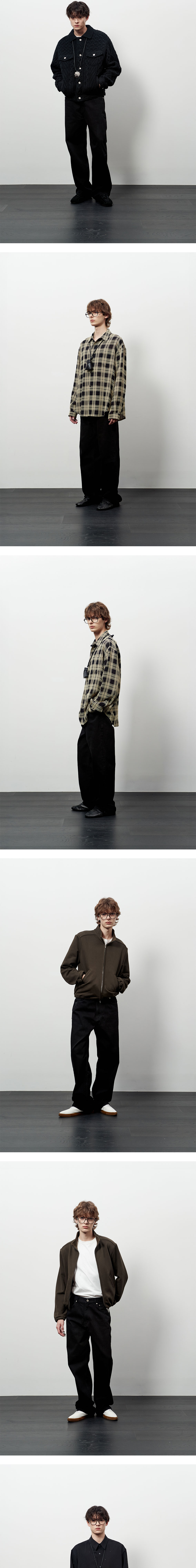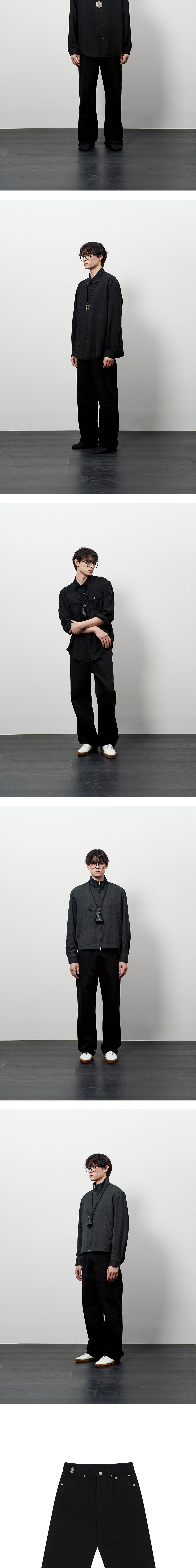 - 스트라이프 텍스쳐 - 5포켓 디테일 - 메탈 벨트 고리 디테일 - 로고 각인 켄톤, 리벳 - YKK 지퍼 - 내부 울 실 처리