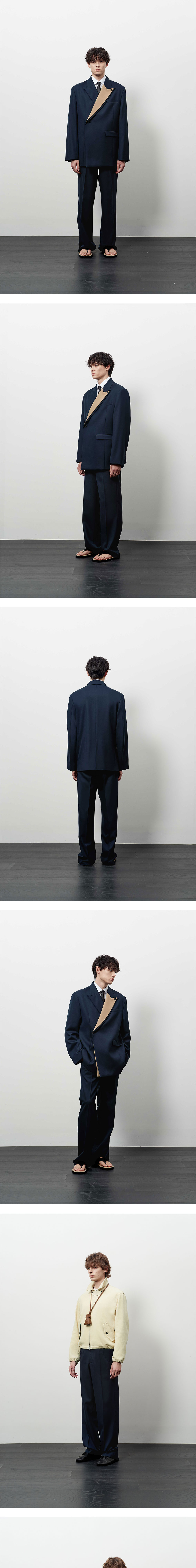 - 백 플랩 포켓 - 앞판 벨트 고리 디테일 - 로고 각인 단추 - 로고 벨트 안감 - 밑단 시접 5cm - YKK 지퍼