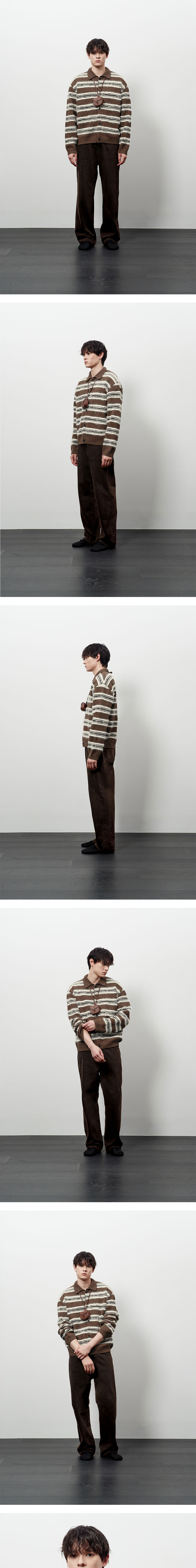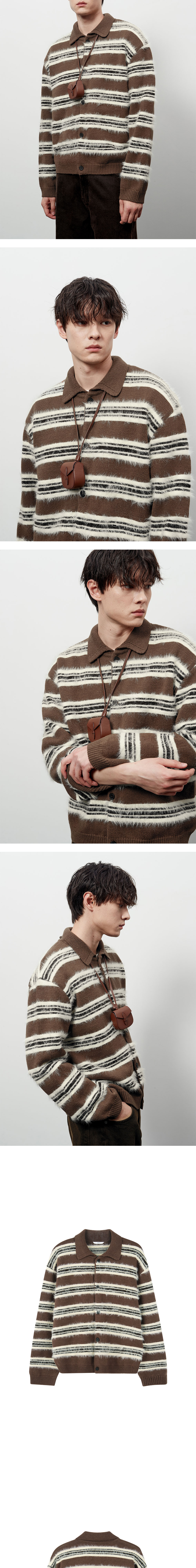 에스티유 플러피 스트라이프 가디건 브라운