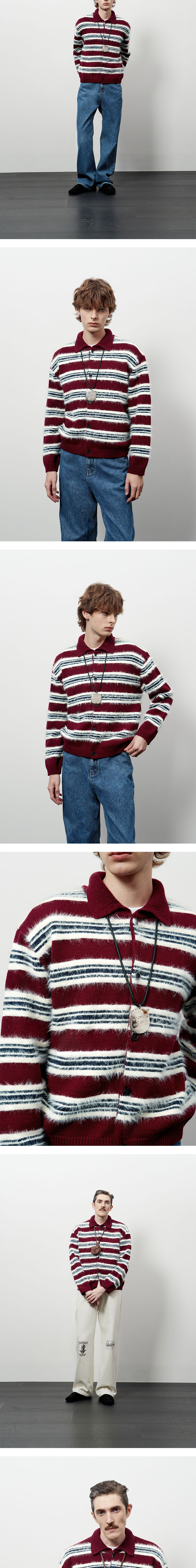- 스트라이프 패턴 배색 - 로고 각인 단추
