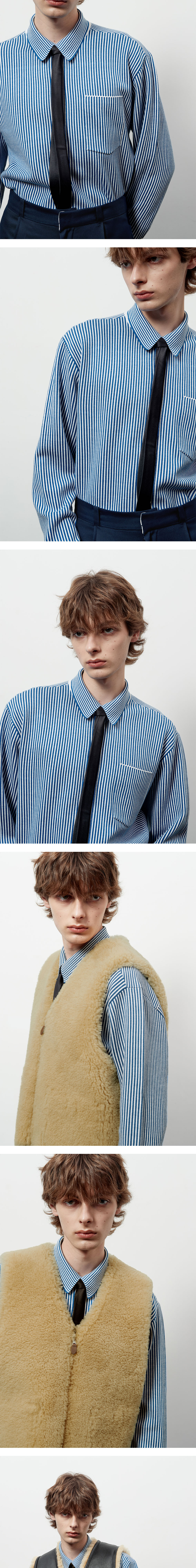 에스티유 스트라이프 니트 셔츠 블루