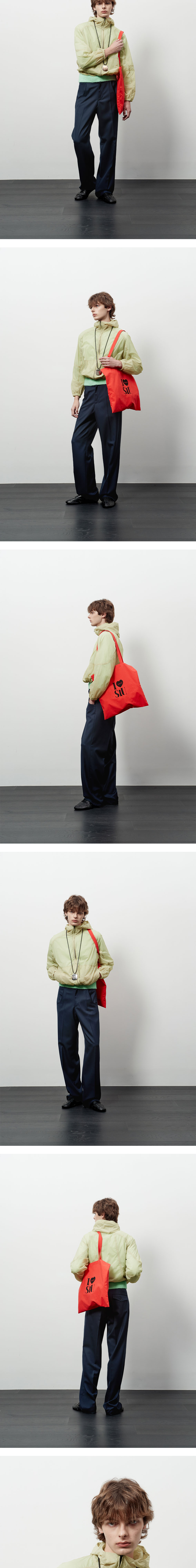 - 크롭 실루엣 - 패치 포켓 디테일 - 뒤판 로고 프린팅 - 커브드 패널 컷팅 - YKK 지퍼
