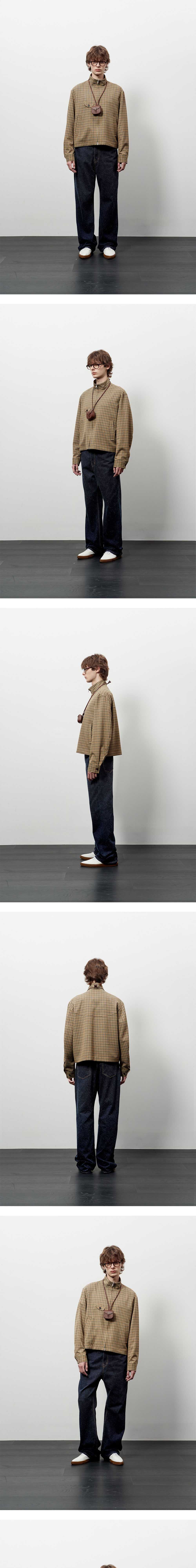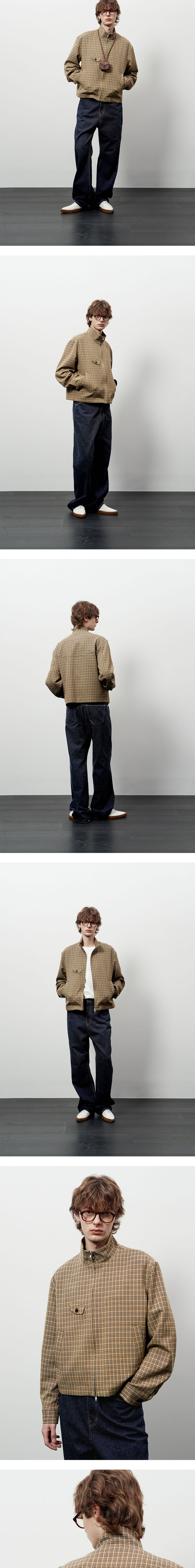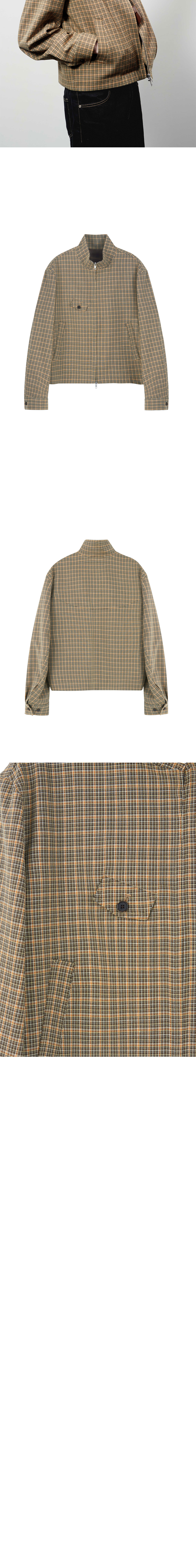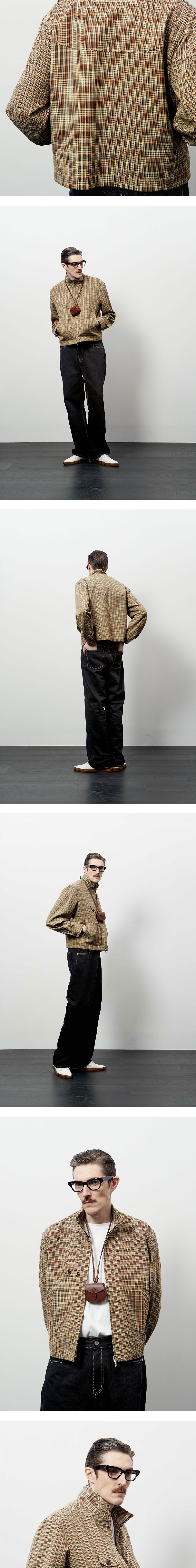 체크 패턴 - YKK 2 way 지퍼 - 로고 각인 소뿔 단추