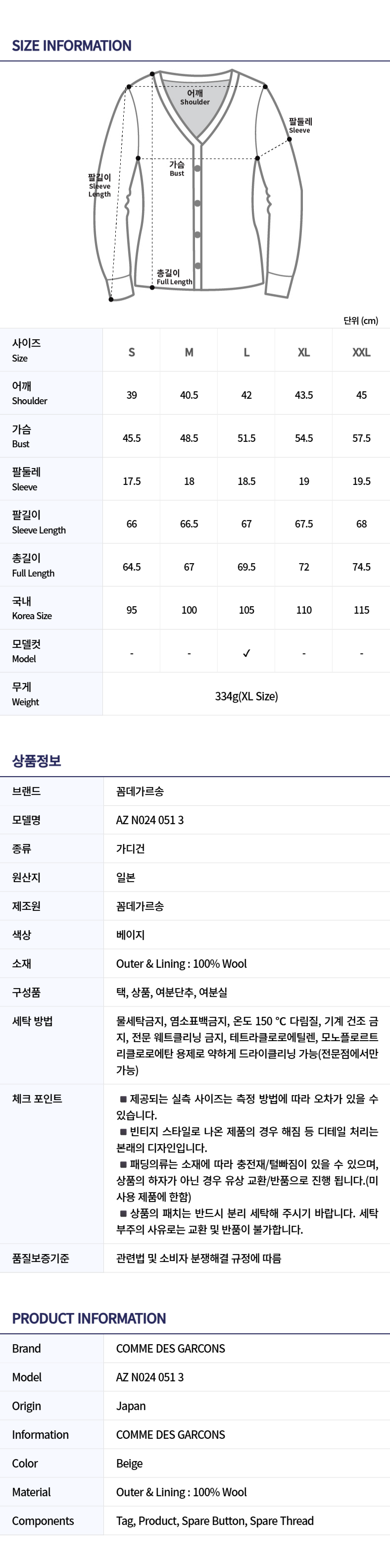 [20%쿠폰] 꼼데가르송 블랙와펜 가디건 베이지
