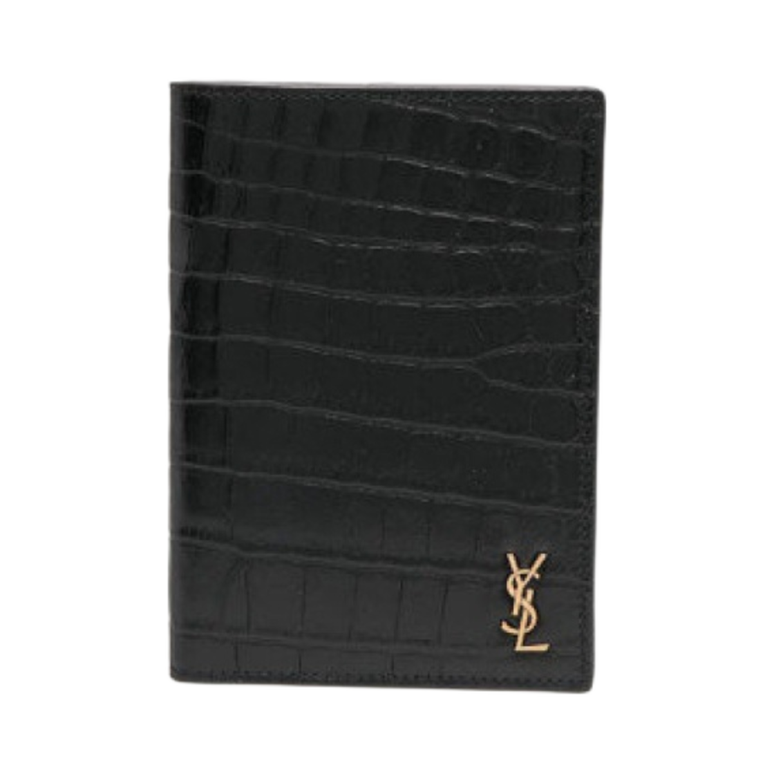 Saint Laurent Tiny Cassandre Passport Case in Crocodile Embossed Matte Leather Black