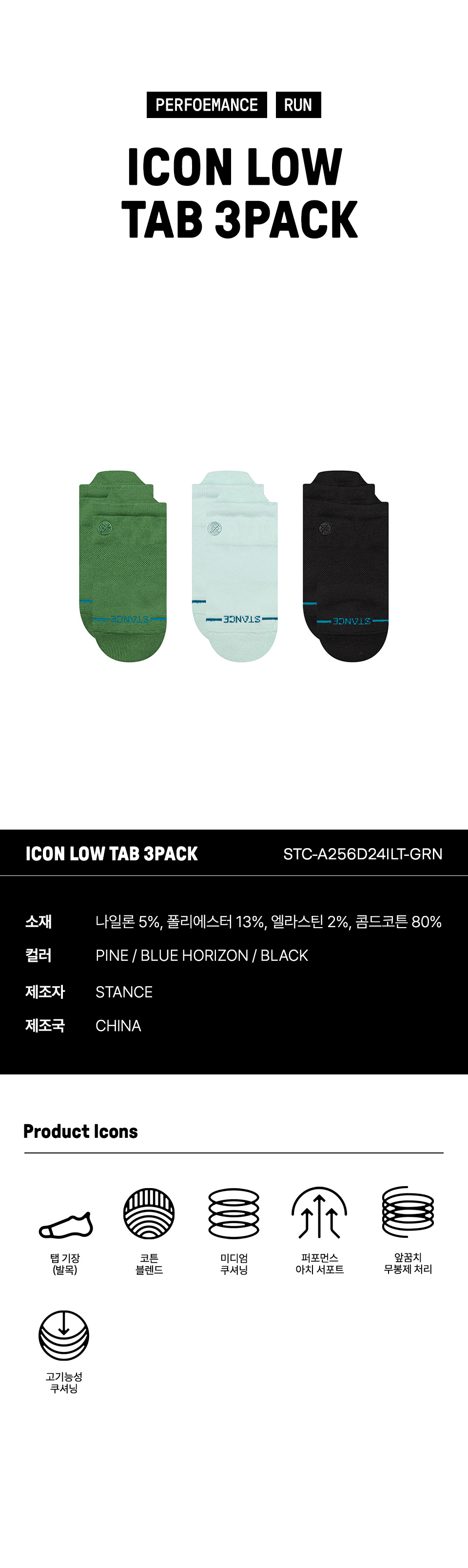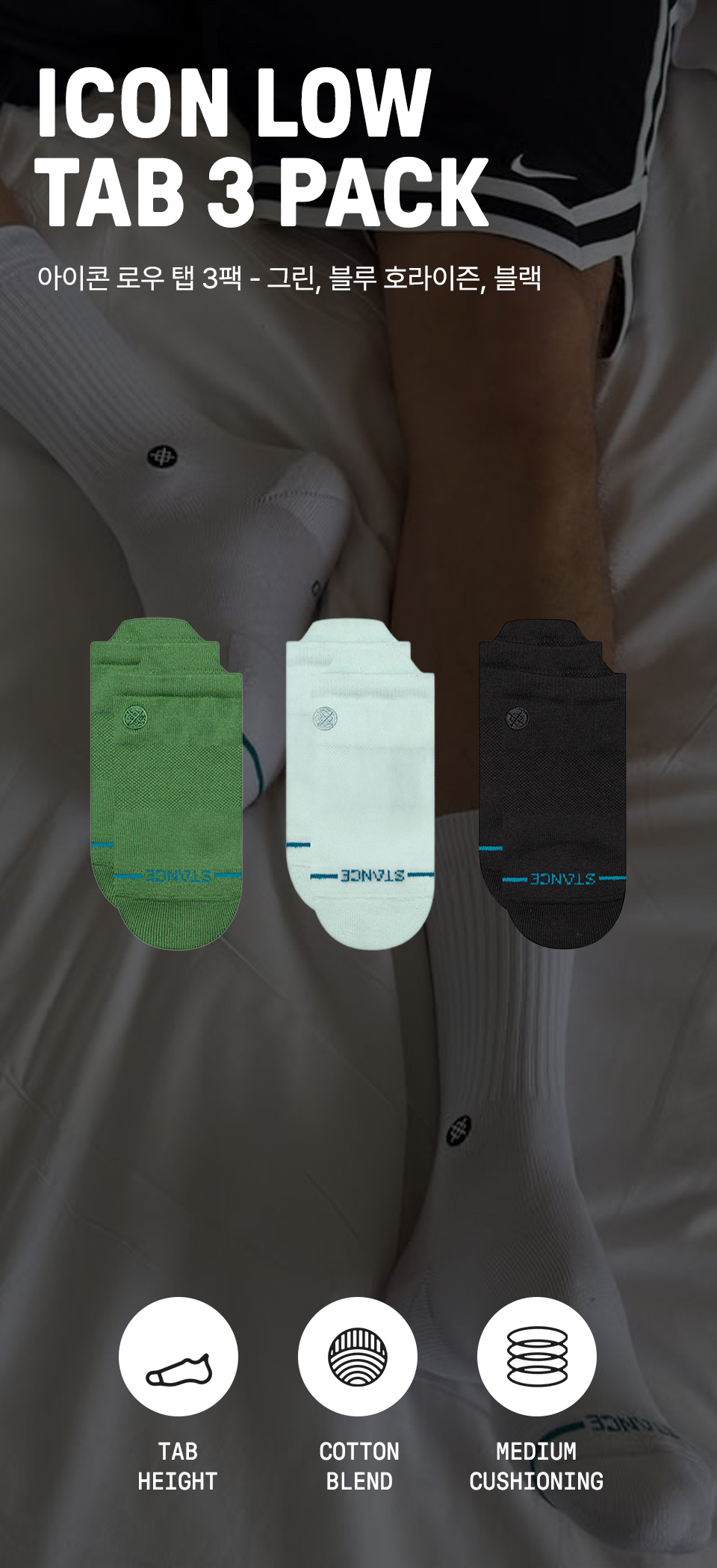 스탠스 유니섹스 아이콘 로우 탭 3팩