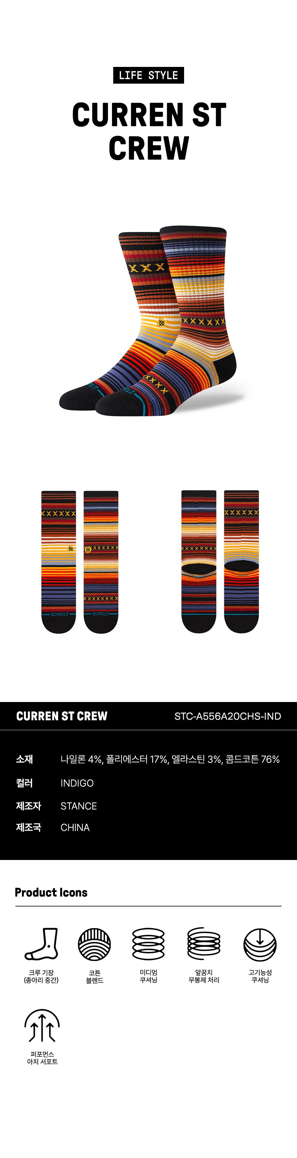 스탠스 유니섹스 커렌 스트릿 크루