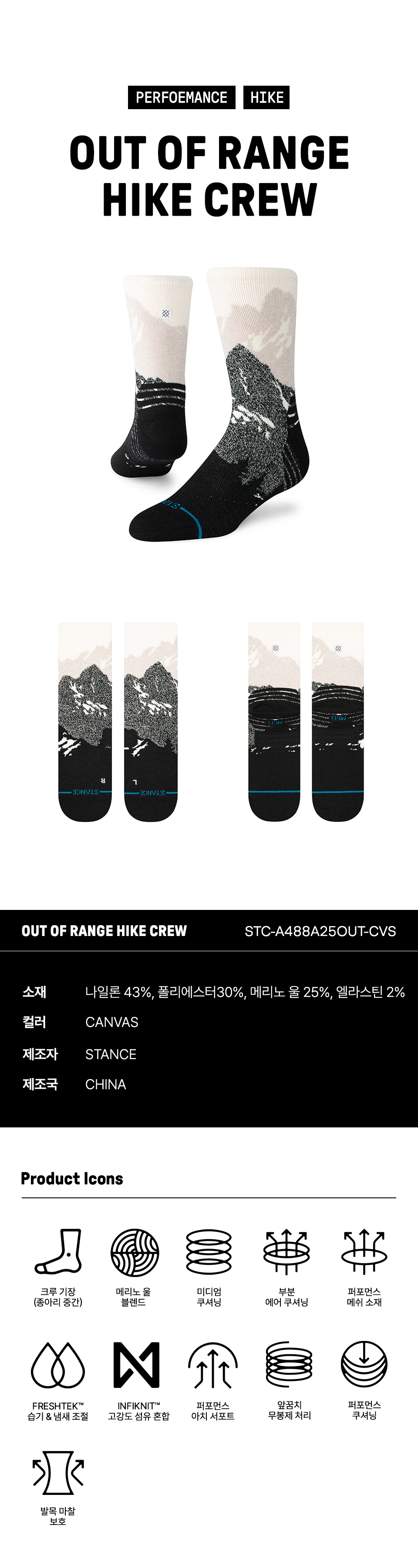 스탠스 유니섹스 아웃 오브 레인지 하이크 크루