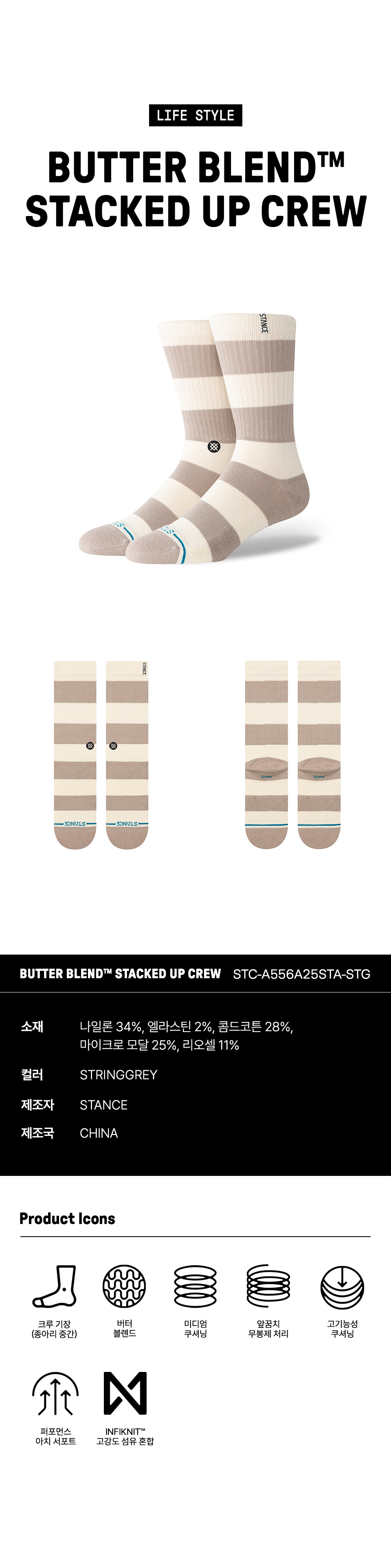 스탠스 유니섹스 버터 블렌드™ 스택드 업 크루