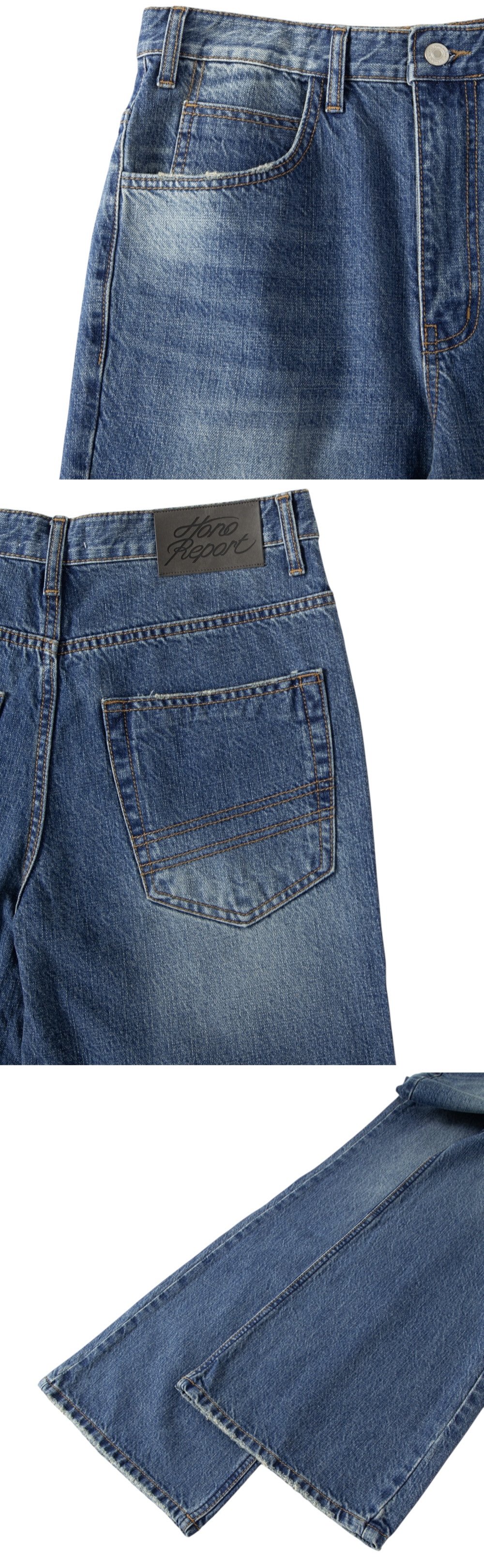 [Product Info] - 밑단 폭이 넓은 벨바텀 핏 - 빈티지 워싱 가공 [Material] - 코튼 100% [Washing Tip] - 찬물 세탁 / 건조기 사용 X [Size] 1 - 허리 38.5 / 총장 104 / 밑위 29 / 허벅지 30 / 밑단 26 cm 2 - 허리 40.5 / 총장 106 / 밑위 30 / 허벅지 31 / 밑단 27 cm 3- 허리 42.5 / 총장 108 / 밑위 31 / 허벅지 32 / 밑단 28 cm [Model] 184cm 65kg - 2 사이즈 착용