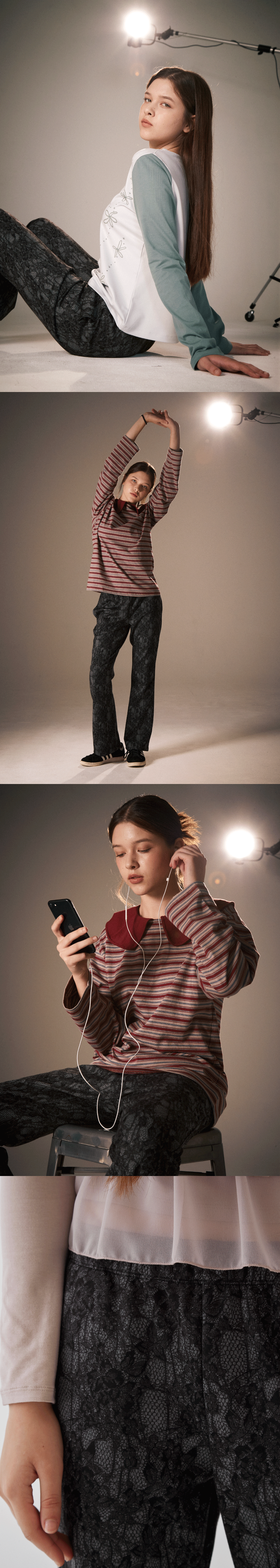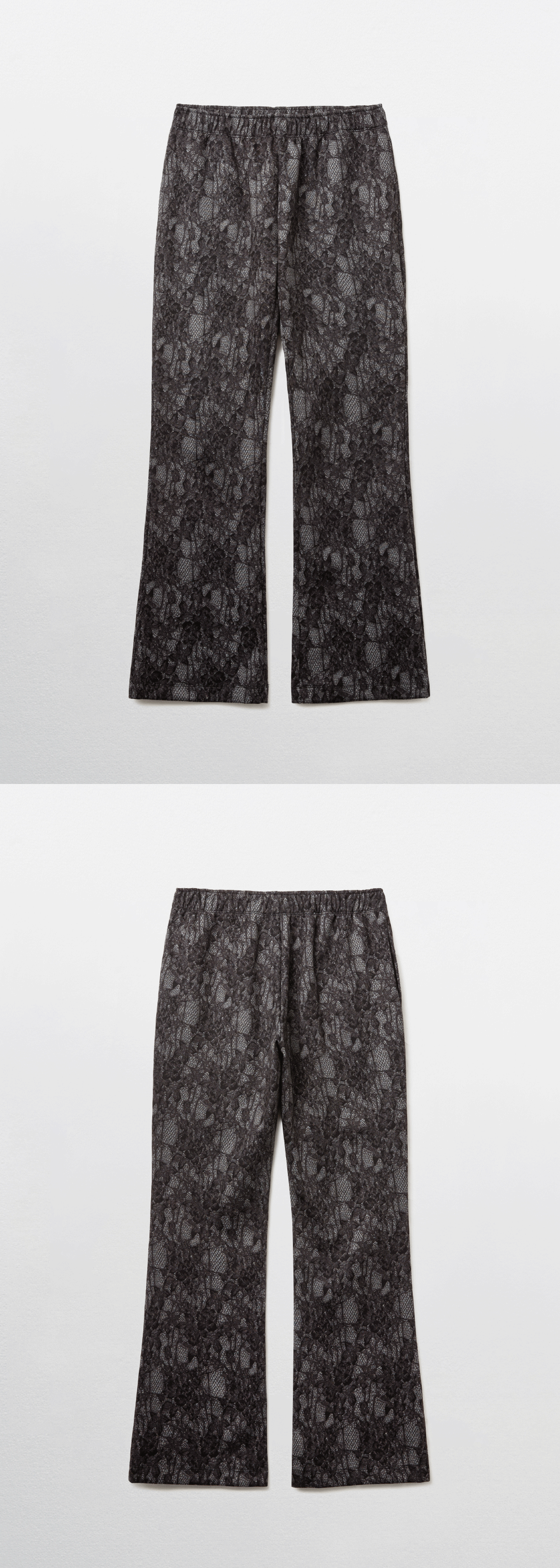 - 레이스가 스캔된 원단의 부츠컷 핏 팬츠 - 허리 전체 밴딩 - 부드럽고 우수한 신축성의 패브릭 - 사이드 포켓 위치