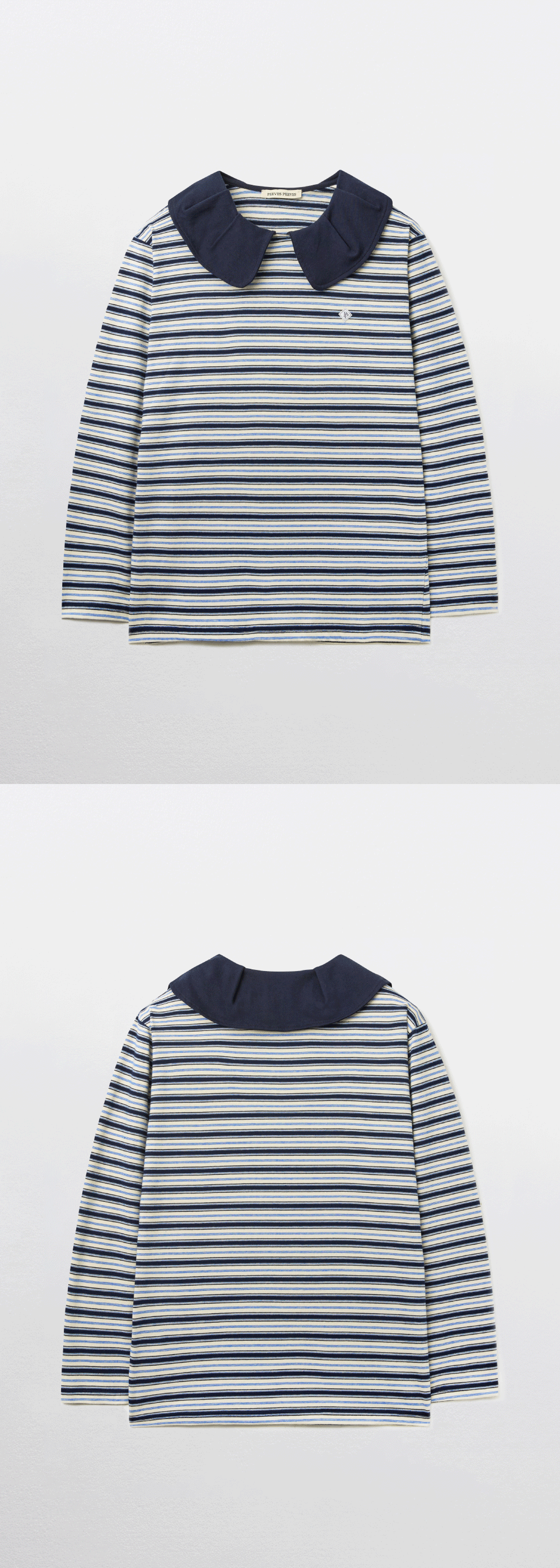 - 스트라이프 패턴 원단의 져지 탑 - 넥라인 빅 칼라 디자인 - 오버사이즈 핏 - 가슴 전면부 직조와펜