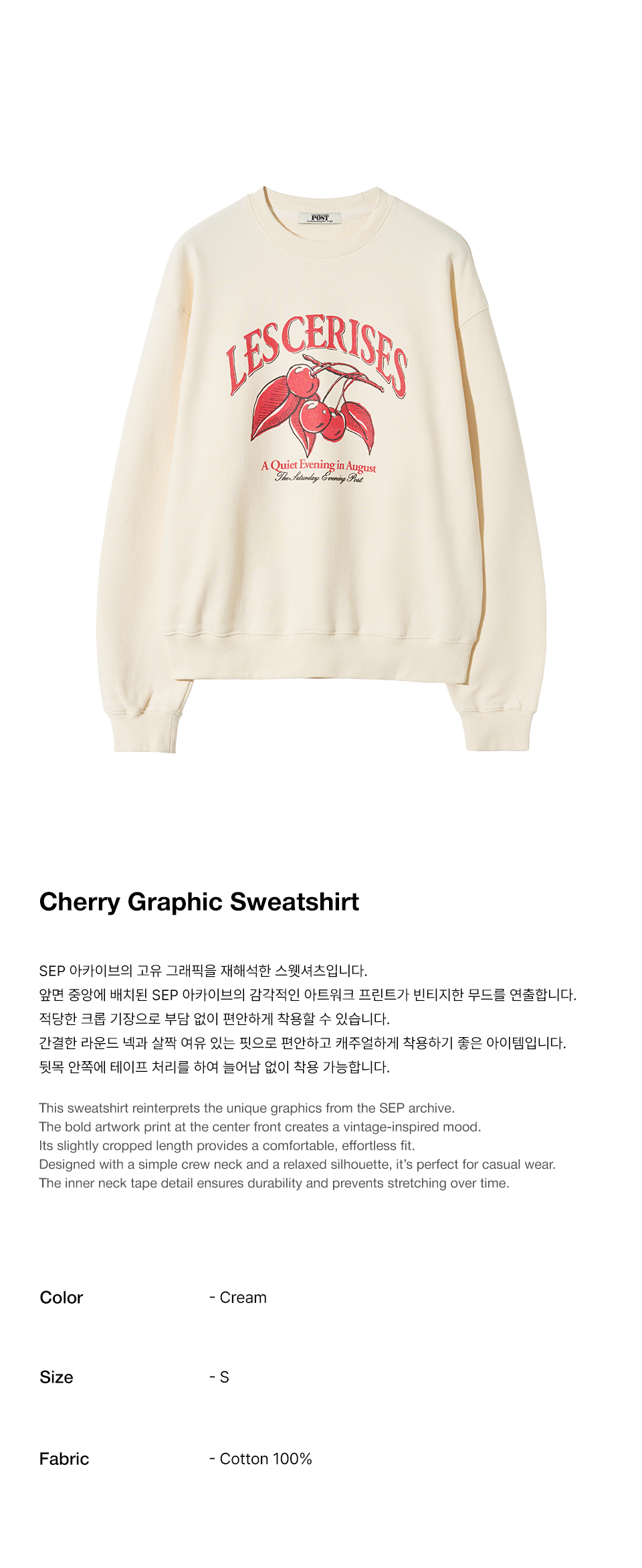 더 새터데이 이브닝 포스트 체리 그래픽 스웨트셔츠 크림
