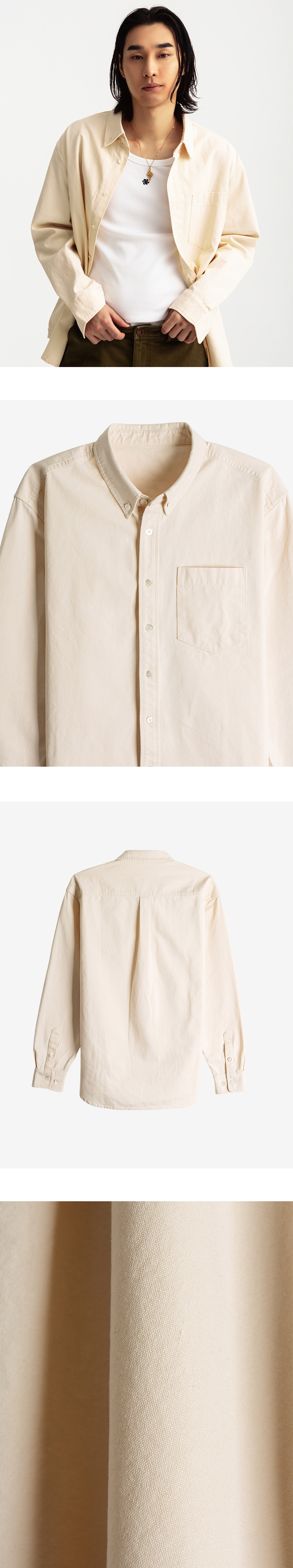 •정확한 제품 디테일은 제품 사진을 참고해주세요. •옥스포드, 면 100% •자개 단추 •가먼트 워싱 •유연제 처리 •패브릭 다잉 •옆면 하단 거셋 디테일 •뒷판 센터 플리츠 •가슴 포켓 •스탠다드 핏