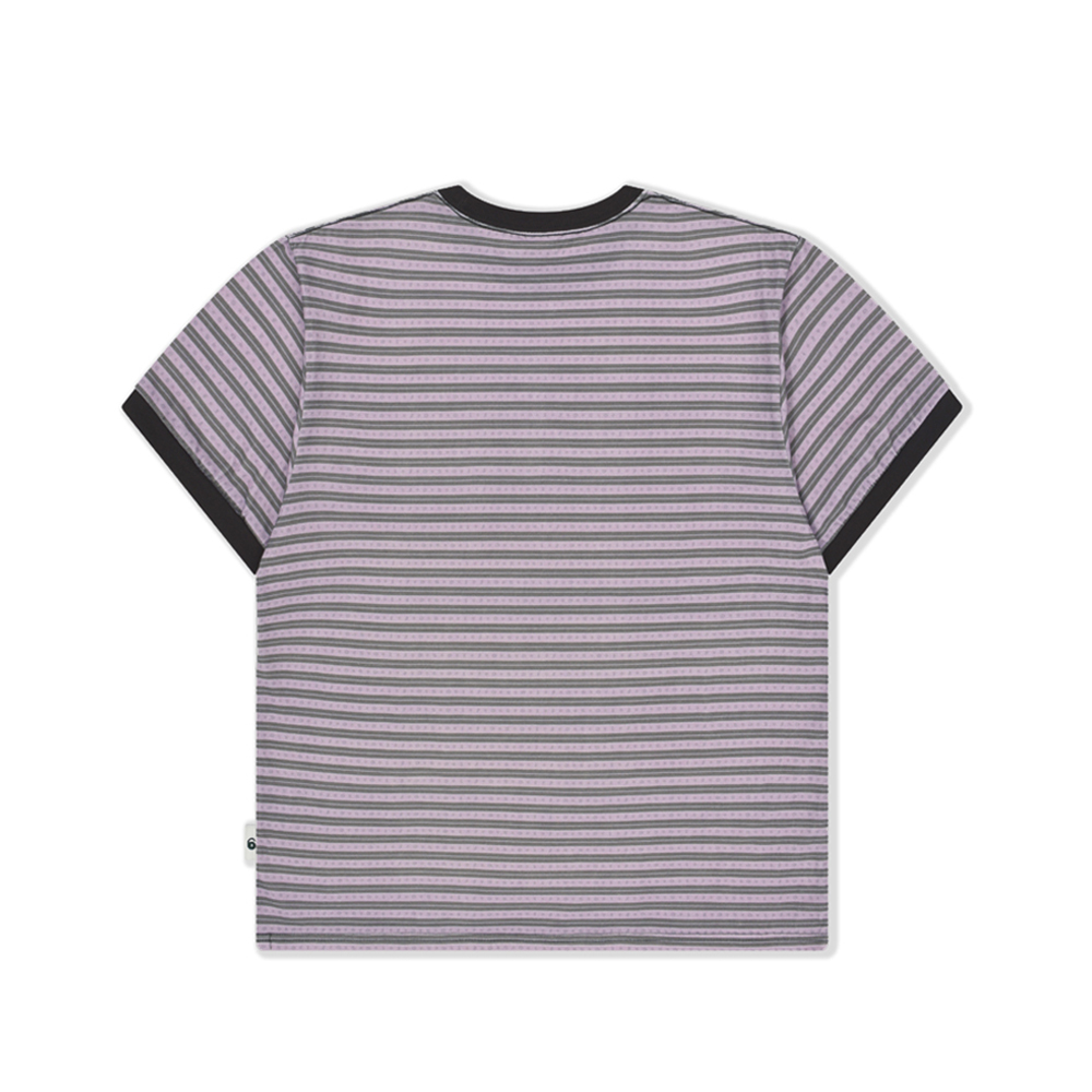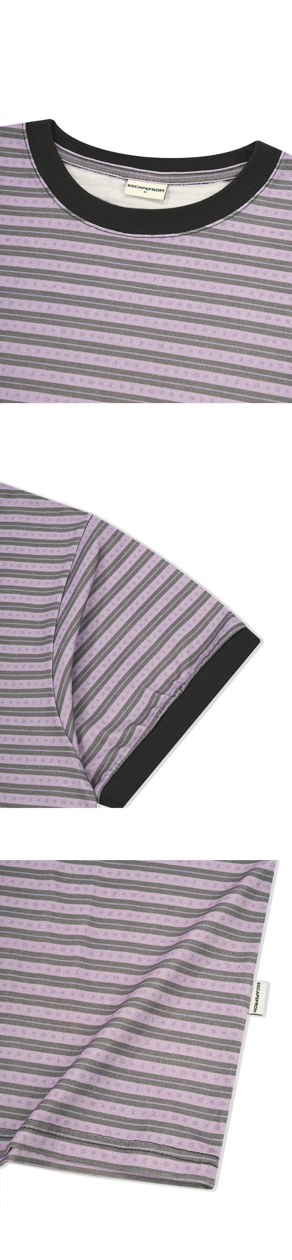 이스케이프프롬 퍼플 스타 로고 스트라이프 풀프린트 링거 반팔티