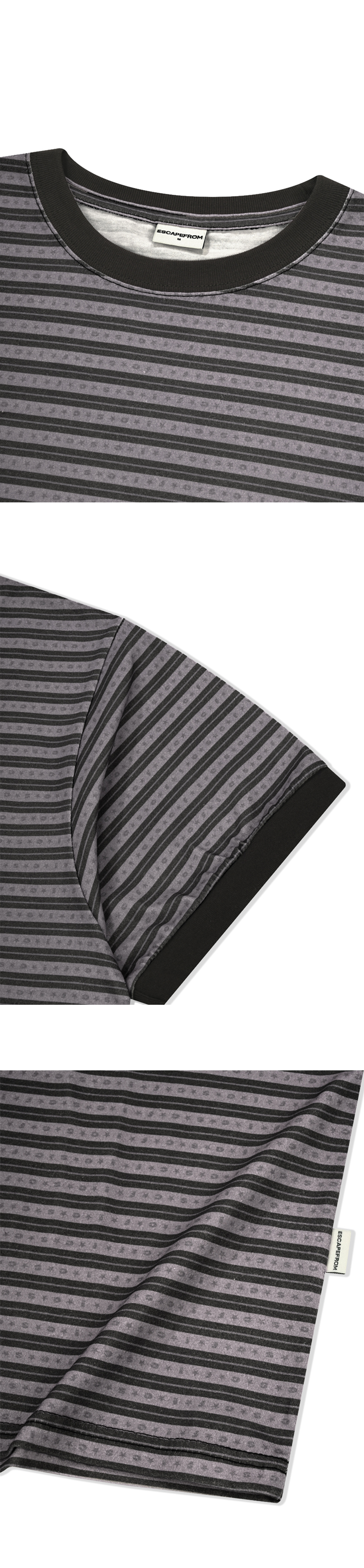 이스케이프프롬 풀 러브 ESCF 앤드 차콜 스타 로고 스트라이프 풀프린트 링거 반팔티