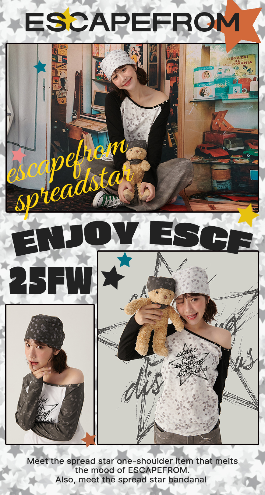 이스케이프프롬 스타 카모 ESCF 로고 콜라주 프린트 롱슬리브 올블랙