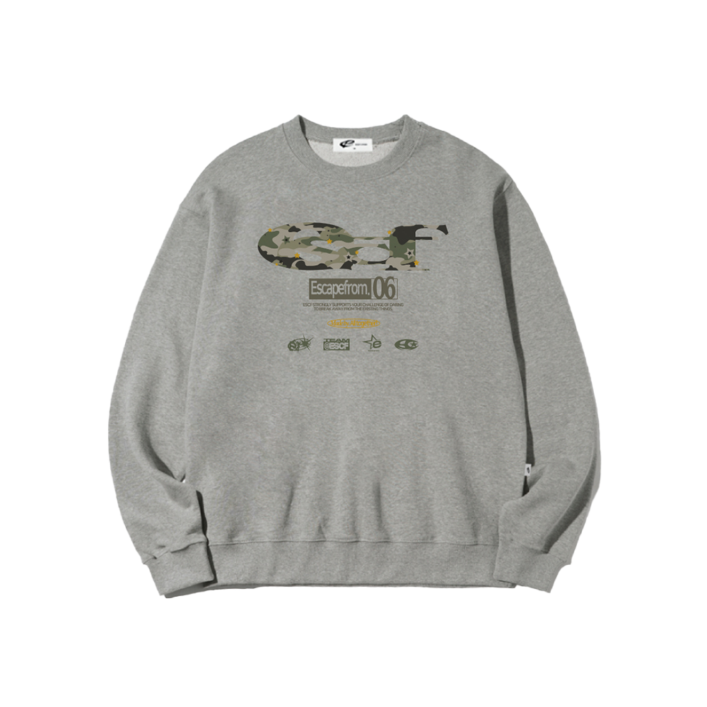 이스케이프프롬 스타 카모 ESCF 로고 콜라주 프린트 맨투맨 그레이