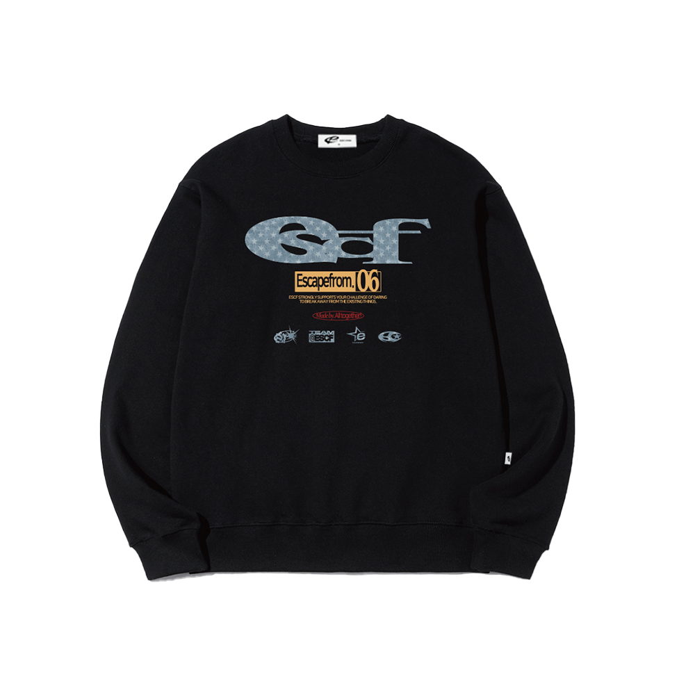 이스케이프프롬 블루 별 데님 ESCF 로고 콜라주 프린트 맨투맨 블랙