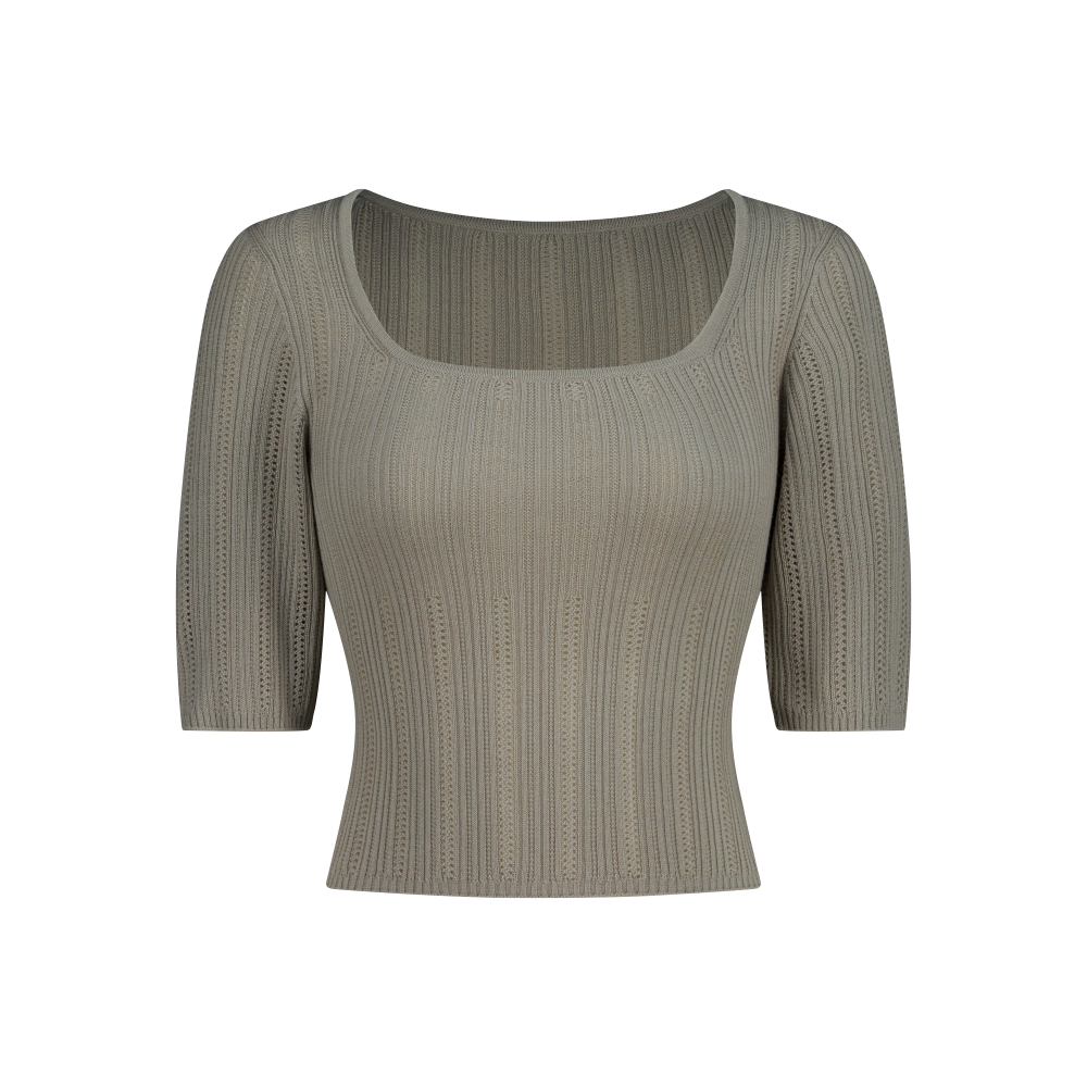 Juukiff Bustier Neck Top In Mixed Wool Ash Grey
