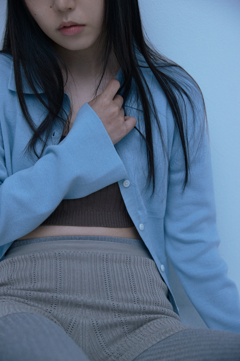 쥬키프 울 레이스 립 니트 쇼츠 애쉬 그레이