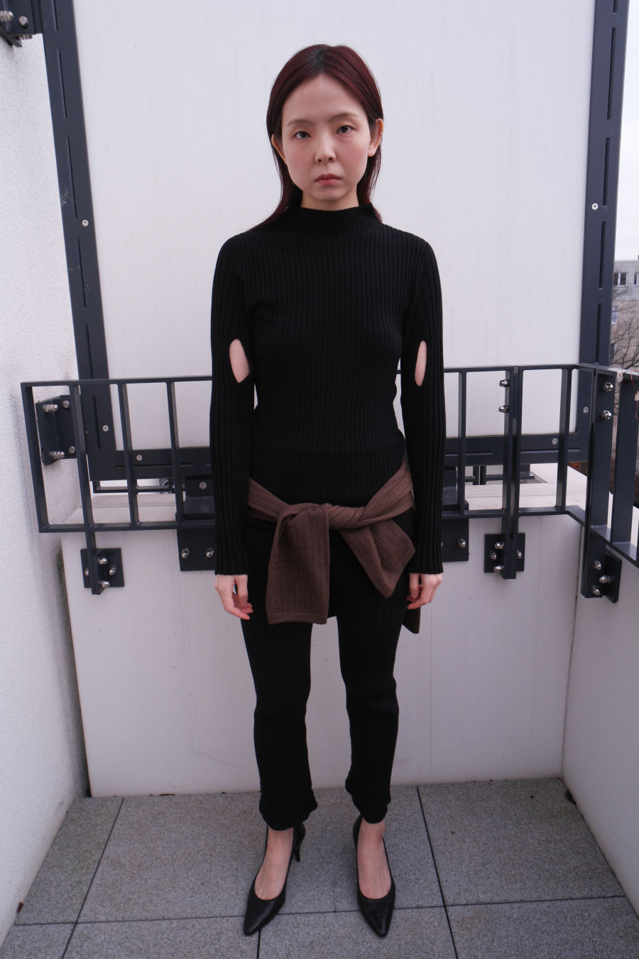 홀가먼트 니트탑으로 봉제선이 없어 가볍고 편안합니다, 소매의 슬릿이 포인트되는 기본 탑으로, 미세한 허리라인이 잡혀있습니다, 전체 립 조직으로 신축성이 매우 뛰어납니다, MOCK-NECK 라인으로, 목선을 보여주는 간절기 풀오버/ 겨울 이너웨어 입니다.