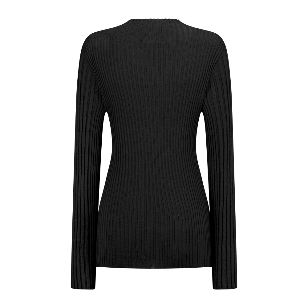 Juukiff Ribbed Mock-Neck Top In Mixed Wool Black