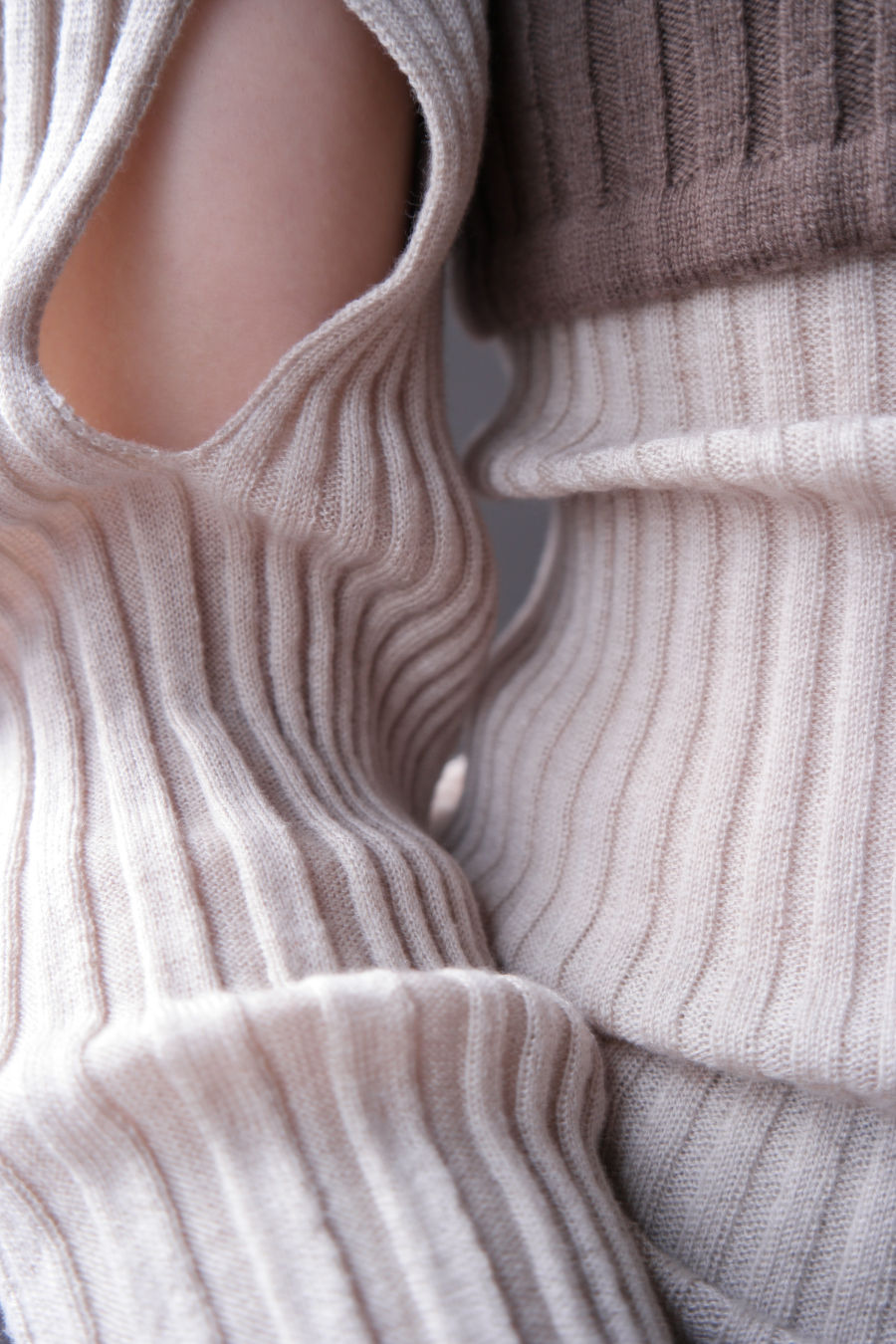 쥬키프 울 립 모크넥 탑 실버 베이지
