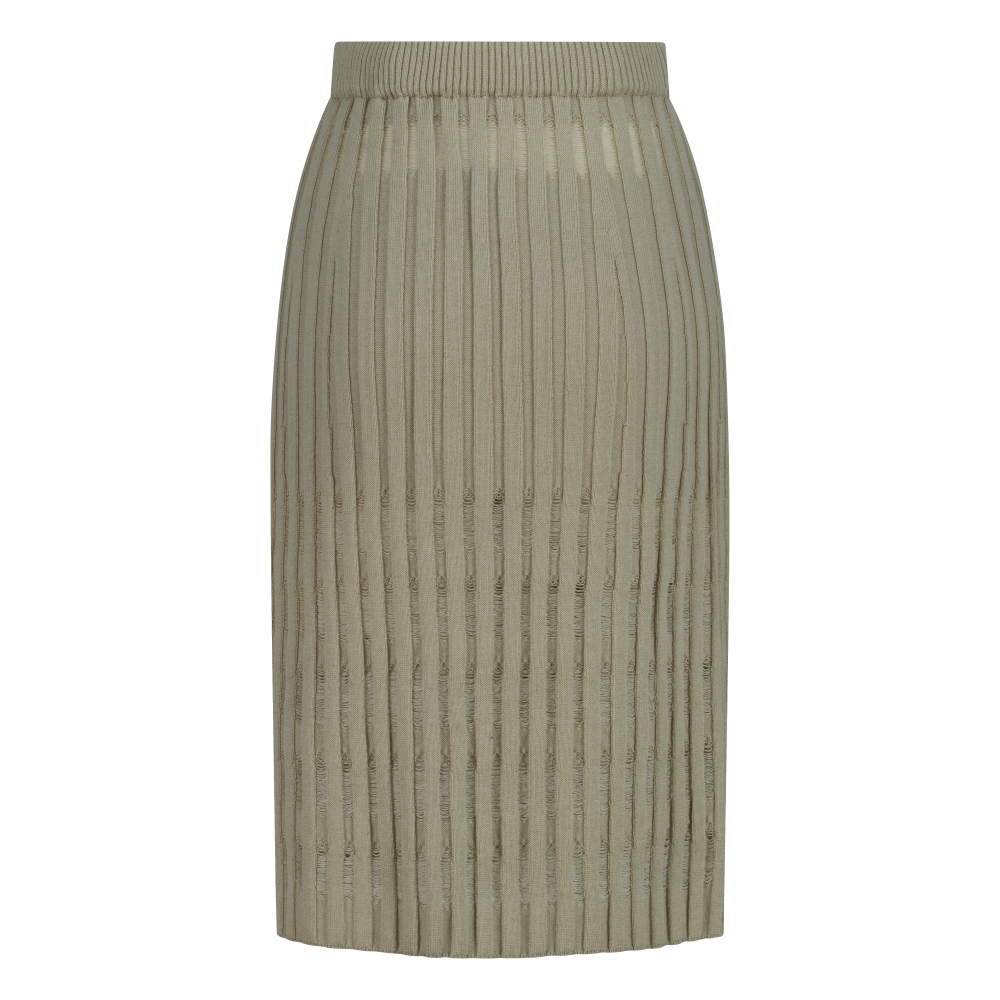 Juukiff Ribbed Lace Skirt In Mixed Wool Silver Beige