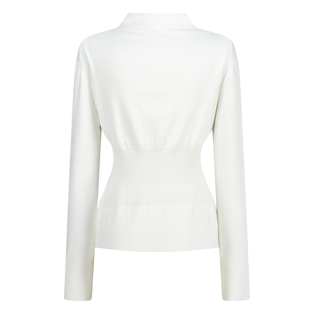 Juukiff Waist Ribbed Shirts Cardigan In Cashmere Mixed Cotton Off White