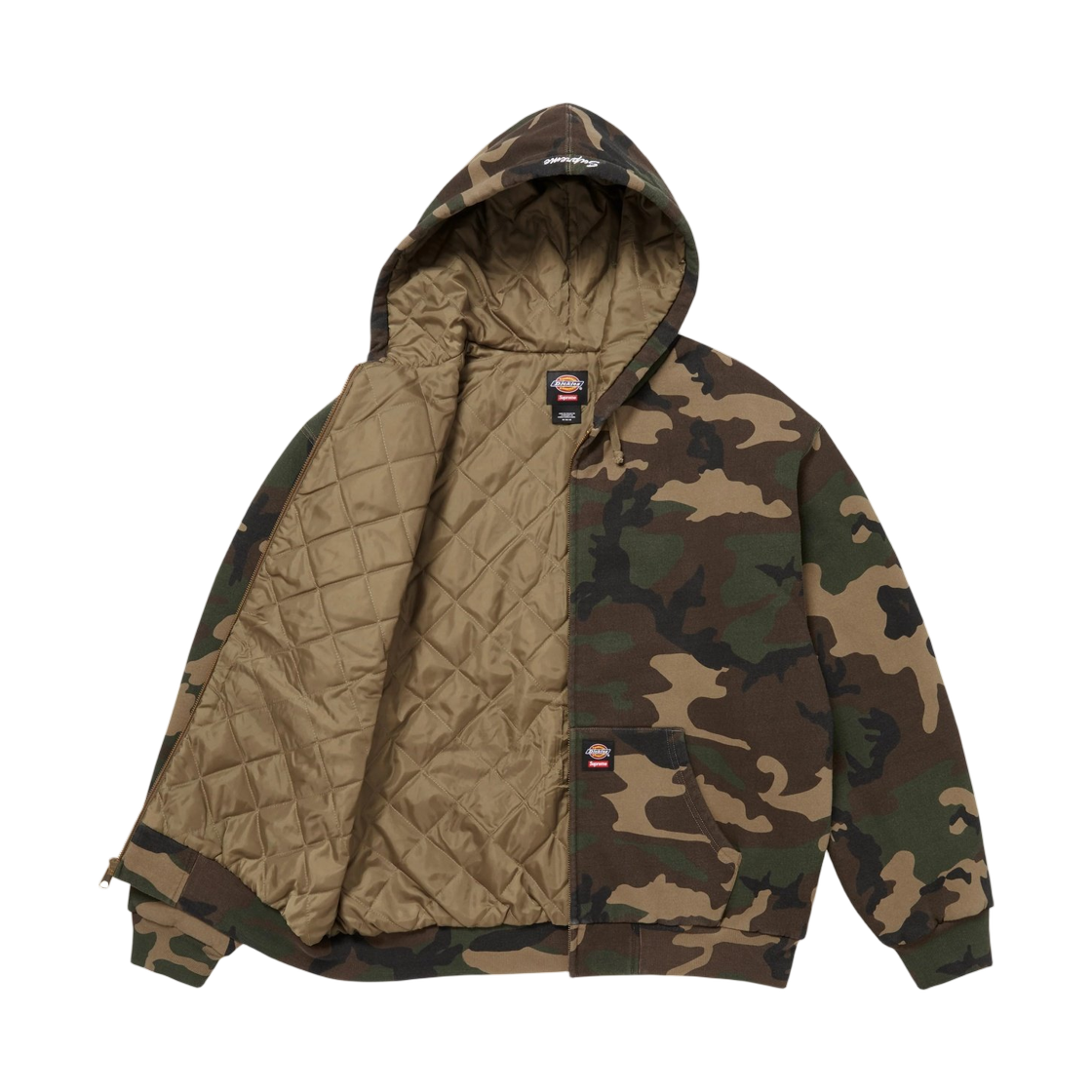 슈프림 x 디키즈 퀼티드 라인드 집업 후드 스웨트셔츠 우드랜드 카모 - 25FW