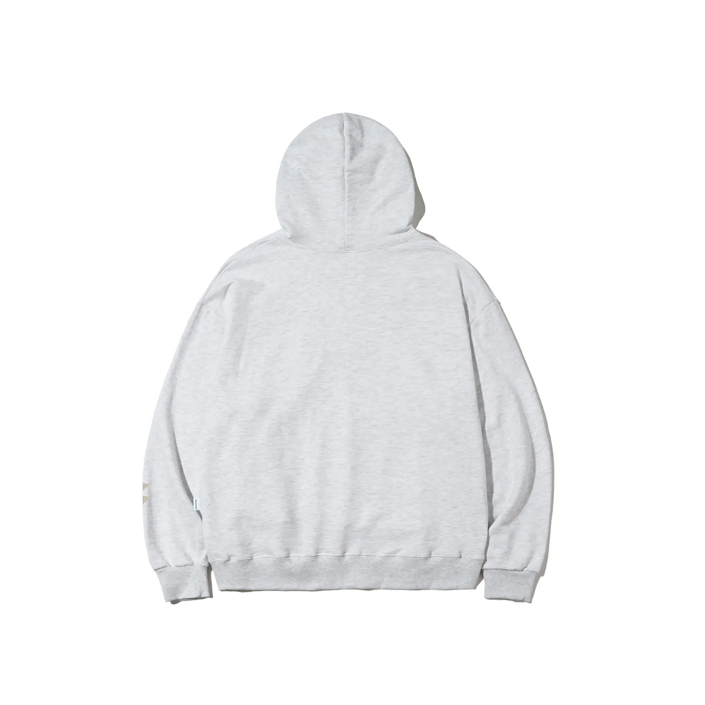 이스케이프프롬 블루 별 데님 ESCF 로고 콜라주 프린트 후드티 화이트멜란지