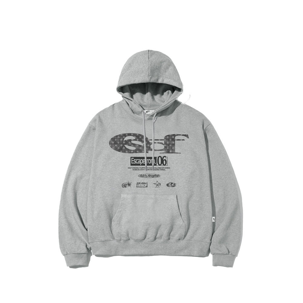 Escapefrom Black Star Denim ESCF Logo Collage Print Hoodie Gray