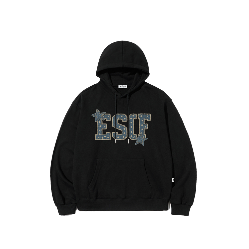 이스케이프프롬 스타 데님 패치 프린트 후드티 블랙