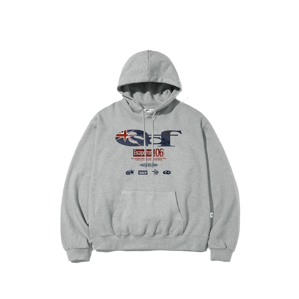 이스케이프프롬 브리티쉬 빈티지 ESCF 로고 콜라주 프린트 후드티 그레이