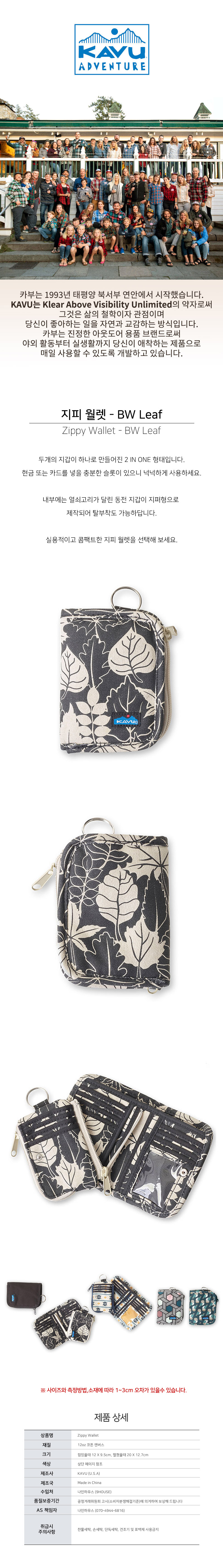 카부 지피 월렛 BW 리프