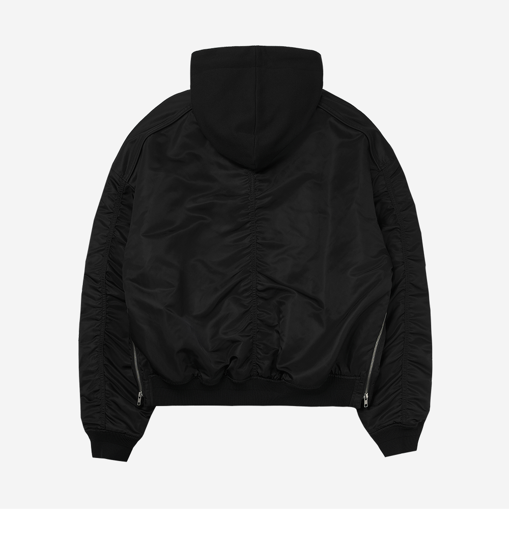 준지 시그니쳐 후드 디테처블 나일론 MA-1 점퍼 블랙 - 25FW