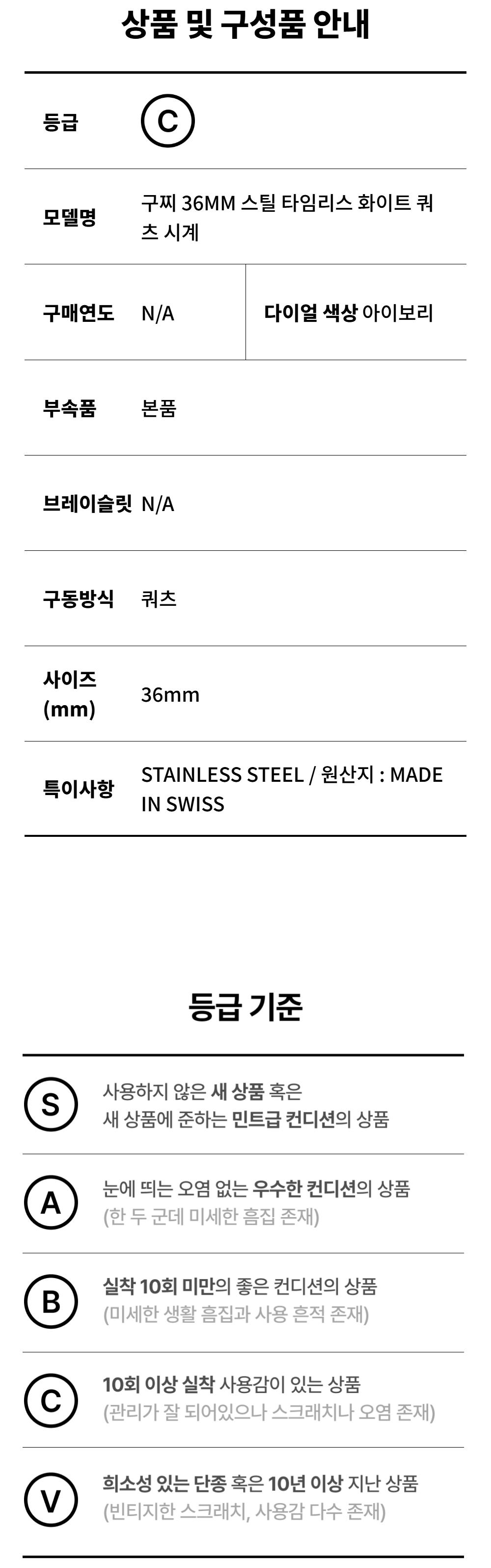 구찌 36MM 스틸 타임리스 화이트 쿼츠 시계 C-B33335