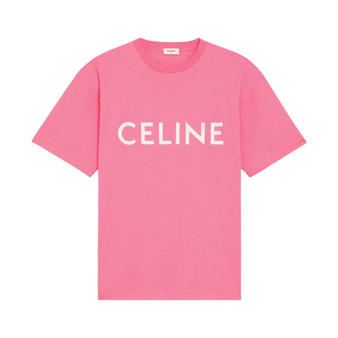Celine Loose T-Shirt with Celine Print in Cotton Jersey Pink Flamingo
