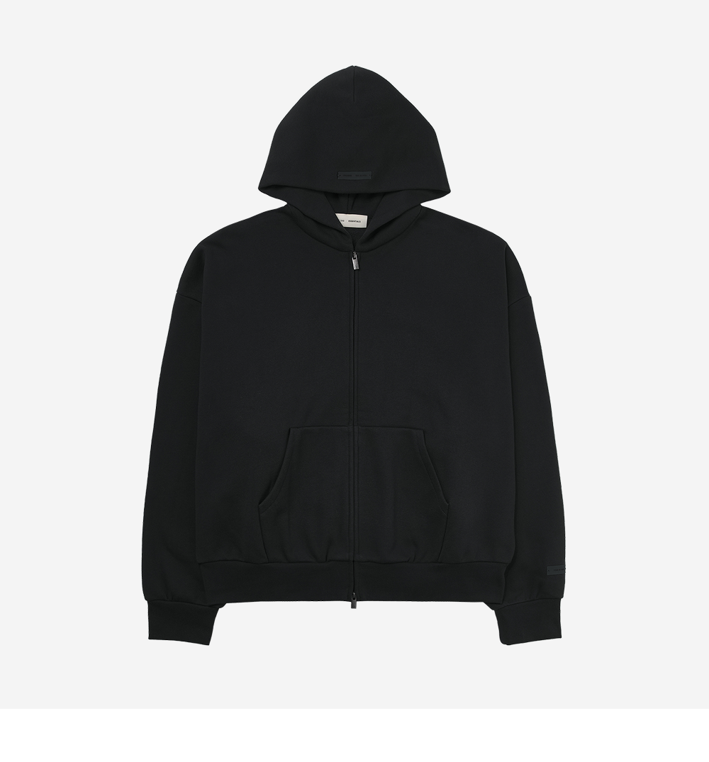 Essentials Classic Fleece Zip Up Hoodie Jet Black - 25SS