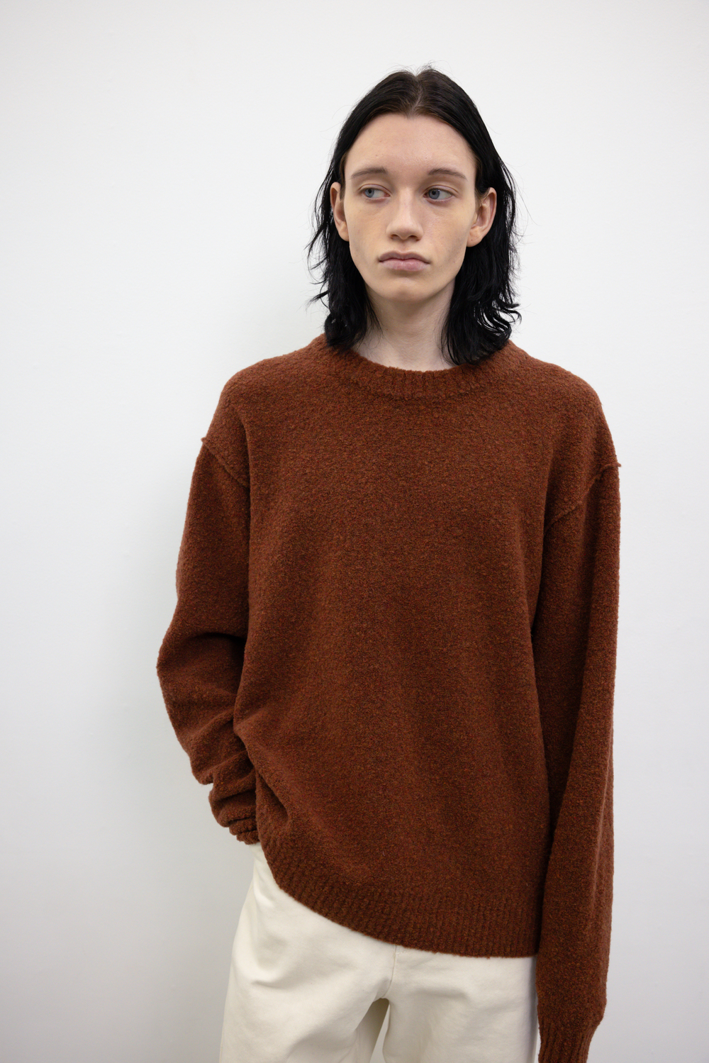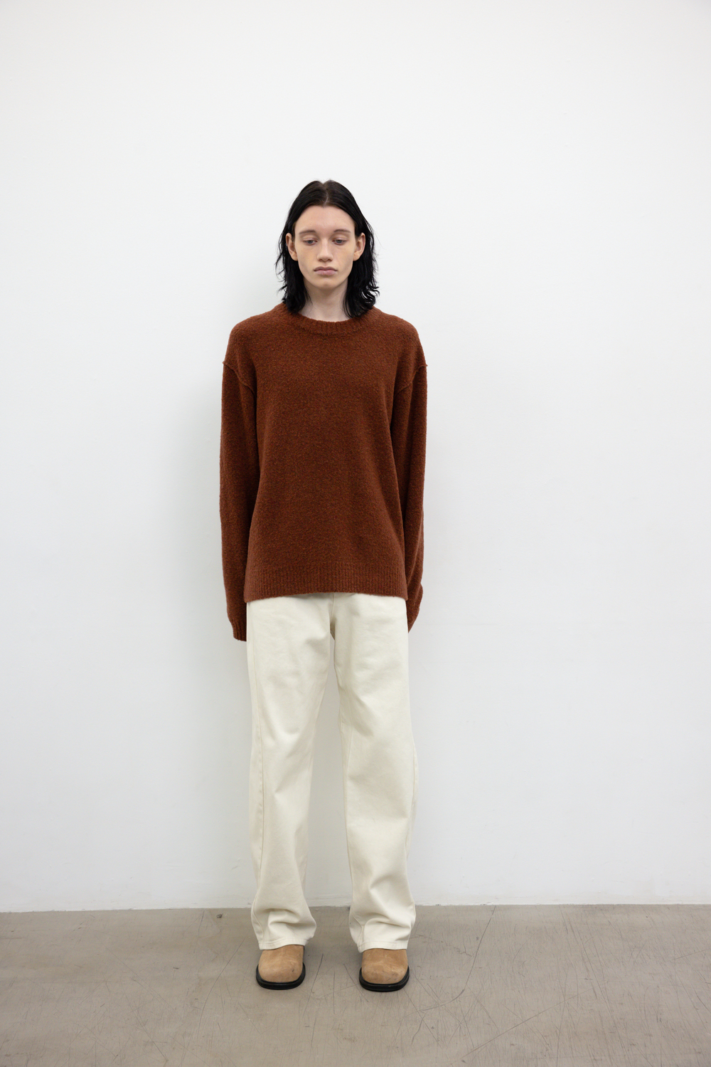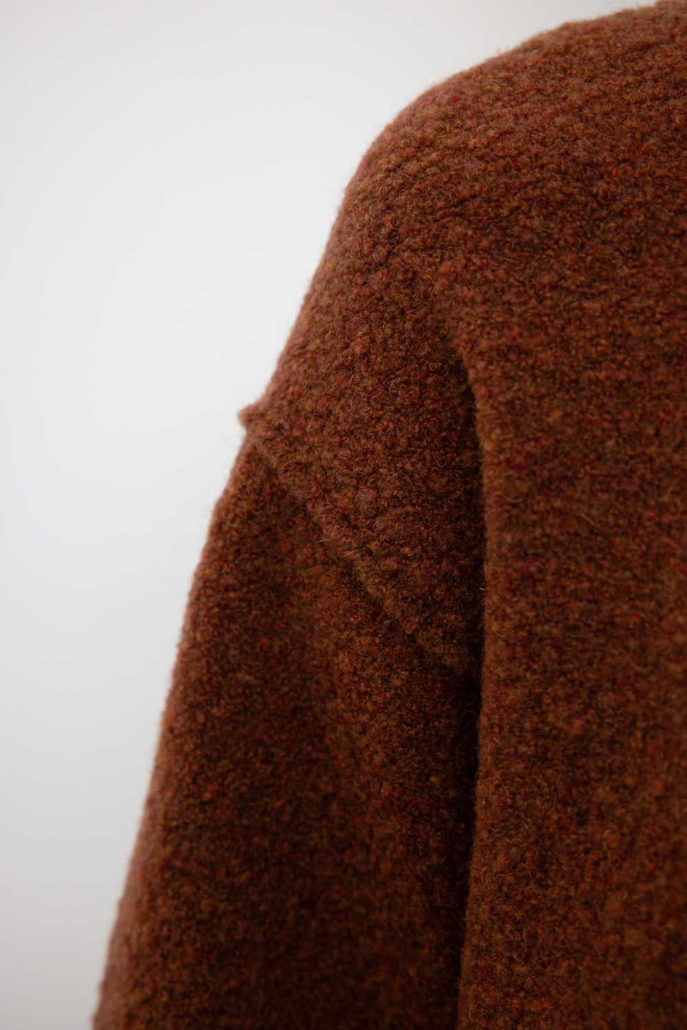 울 블랜드 부클 소재로 입체적인 텍스쳐감을 가진 풀오버 입니다. 가벼운 착용감과 여유로운 핏으로 편안함을 더했으며 뛰어난 신축성을 자랑합니다. 아웃심 디테일로 포인트를 주었으며, 개발한 심볼 로고 금속 장식으로 마무리하여 세련된 무드를 더했습니다. 46 어깨 46.5CM 가슴 49CM 총장 66.5CM 밑단 39.5CM 암홀 25.5CM 소매장 59CM 48 어깨 49CM 가슴 60CM 총장 68CM 밑단 42CM 암홀 25.5CM 소매장 59CM 50 어깨 51.5CM 가슴 62.5CM 총장 69.5CM 밑단 44.5CM 암홀 26.5CM 소매장 61.5CM 치수는 재는 위치에 따라 1-3cm 차이 생길 수 있습니다. 어두운 원단은 염색되었기 때문에 밝은 아이템과 착용 시 주의 부탁드립니다. DRY CLEAN ONLY 181cm 마른체형 모델 48 SIZE 착용