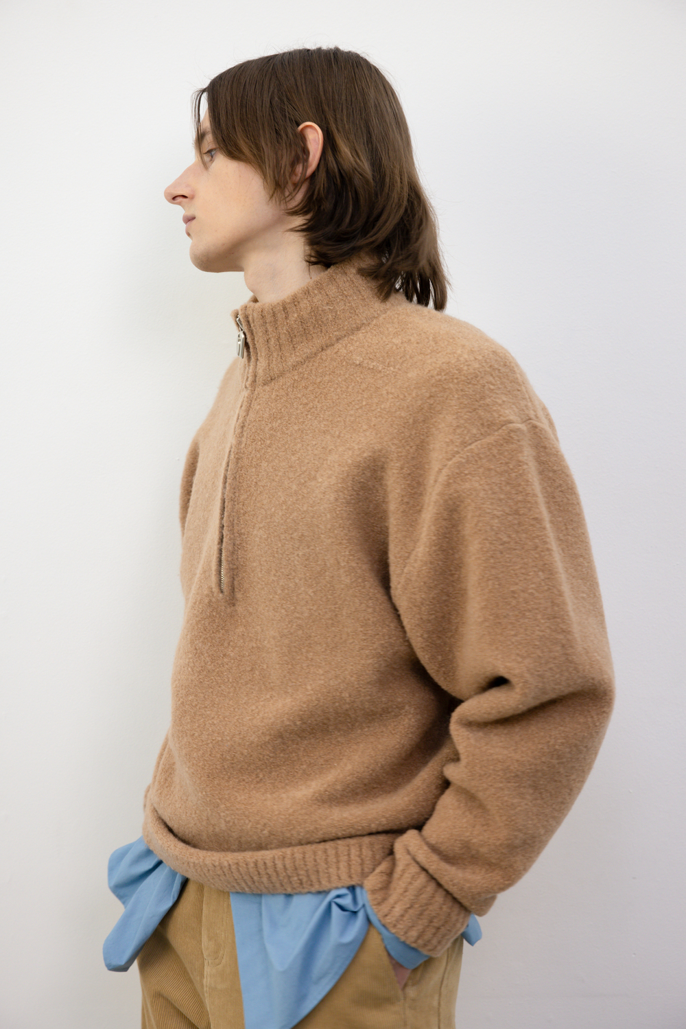 울 함유량이 높은 부클 소재를 사용해 보온성과 부드러운 착용감을 동시에 갖춘 하프 집업 니트웨어입니다. 뛰어난 신축성으로 편안한 활동성을 제공하며, 여유있는 사이즈로 일상에서도 부담 없이 착용할 수 있습니다. 브랜드 로고 심볼이 장식된 고급스러운 메탈 지퍼를 사용해 실용성과 함께 세련된 포인트를 더했습니다. 46 어깨 52CM 가슴 58CM 총장 66CM 밑단 46.5CM 암홀 32.5CM 소매장 60CM 48 어깨 55CM 가슴 61CM 총장 67CM 밑단 49.5CM 암홀 32.5CM 소매장 60CM 50 어깨 58CM 가슴 64CM 총장 68CM 밑단 52.5CM 암홀 33.5CM 소매장 61CM 치수는 재는 위치에 따라 1-3cm 차이 생길 수 있습니다. 어두운 원단은 염색되었기 때문에 밝은 아이템과 착용 시 주의 부탁드립니다. DRY CLEAN ONLY 181cm 마른체형 모델 48 SIZE 착용