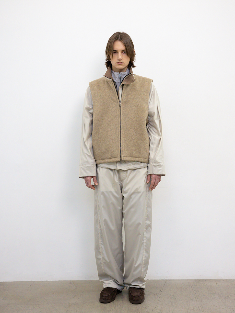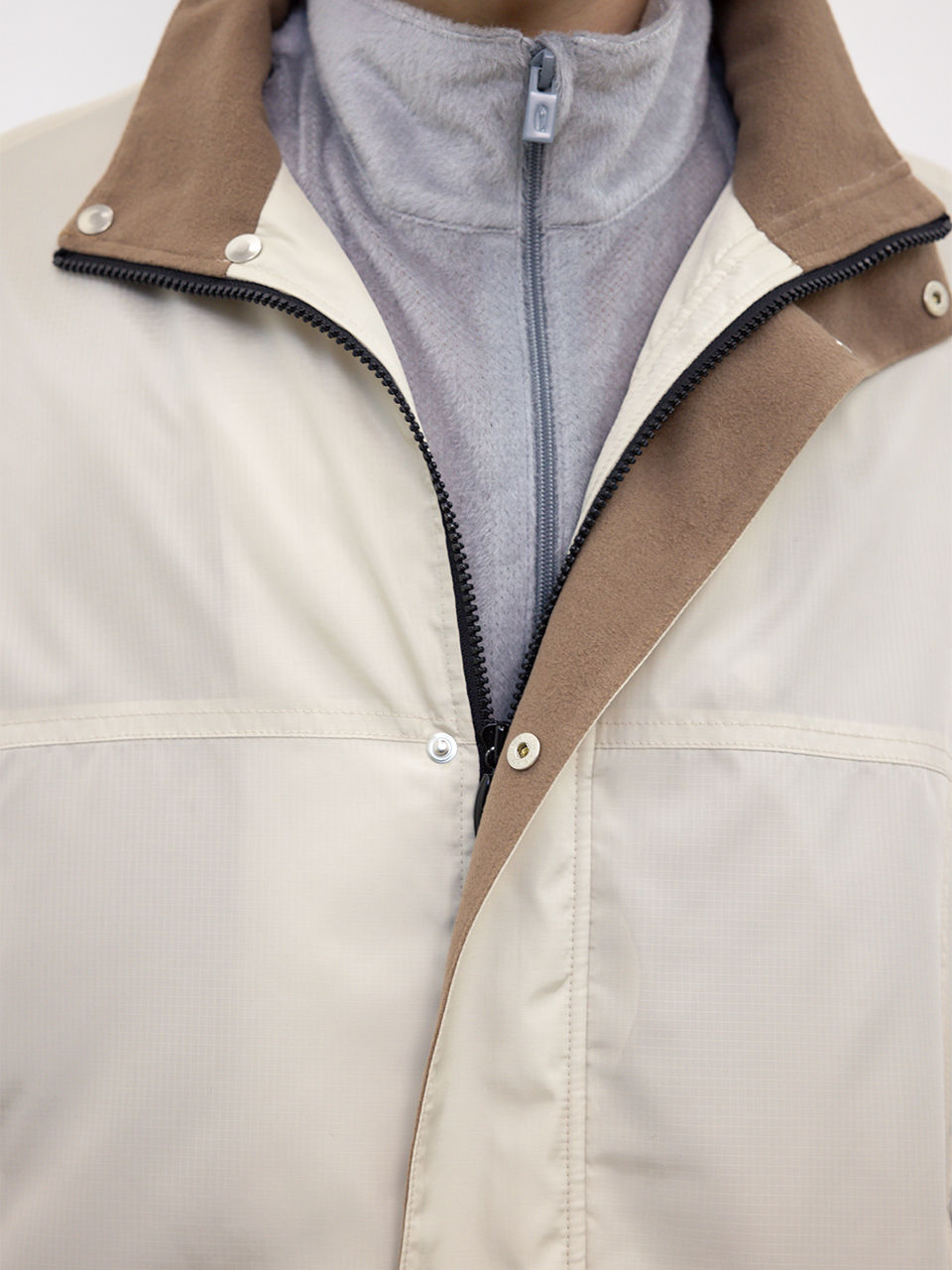 FABRIC FROM JAPAN 다기능 섬유로 제작한 기모 트리코트 메시 아노락 점퍼입니다. 가볍고 흡습·속건 기능과 보온성을 갖춘 소재로 일상에서 편안하게 착용할 수 있습니다. 오버사이즈 실루엣에 밑단과 소매 밴드 디테일로 포인트를 주었으며, 백 플랩 아래 숨겨진 포켓으로 실용성을 더했습니다. 심볼 로고 슬라이더로 마무리했습니다. 46 어깨 54.5CM 가슴 60.5CM 총장 69CM 밑단 49.5CM 소매 60CM 소매부리 10CM 48 어깨 56.5CM 가슴 63CM 총장 70CM 밑단 52CM 소매 61CM 소매부리 10.5CM 50 어깨 58.5CM 가슴 65.5CM 총장 71CM 밑단 54.5CM 소매 62CM 소매부리 11CM 치수는 재는 위치에 따라 1-3cm 차이 생길 수 있습니다. 어두운 원단은 염색되었기 때문에 밝은 아이템과 착용 시 주의 부탁드립니다. DRY CLEAN ONLY 181cm 마른체형 모델 48 SIZE 착용