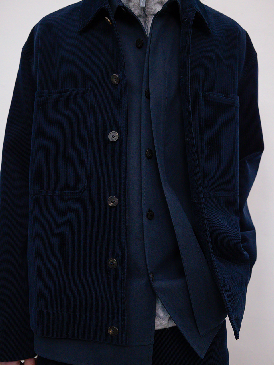 부드러운 터치감의 밀도 높은 코튼 코듀로이 소재로 제작한 자켓입니다. 트러커 형태의 디자인으로 캐주얼한 연출이 가능하고 가볍게 착용하기 좋은 아이템입니다. 프론트 더블 레이어드 포켓 디테일로 포인트를 주었으며 소매의 미니멀한 커프스 디테일로 견고함을 더했습니다. 로고 각인된 지속가능한 카제인 단추와 개발한 심볼 금속 장식으로 마무리하였습니다. 46 어깨 52CM 가슴 63CM 총장 67CM 밑단 59.5CM 소매 61CM 소매부리 13.5CM 48 어깨 54CM 가슴 65.5CM 총장 68CM 밑단 62CM 소매 62CM 소매부리 14CM 50 어깨 56CM 가슴 68CM 총장 69CM 밑단 64.5CM 소매 63CM 소매부리 14.5CM 치수는 재는 위치에 따라 1-3cm 차이 생길 수 있습니다. 어두운 원단은 염색되었기 때문에 밝은 아이템과 착용 시 주의 부탁드립니다. DRY CLEAN ONLY 181cm 마른체형 모델 48 SIZE 착용