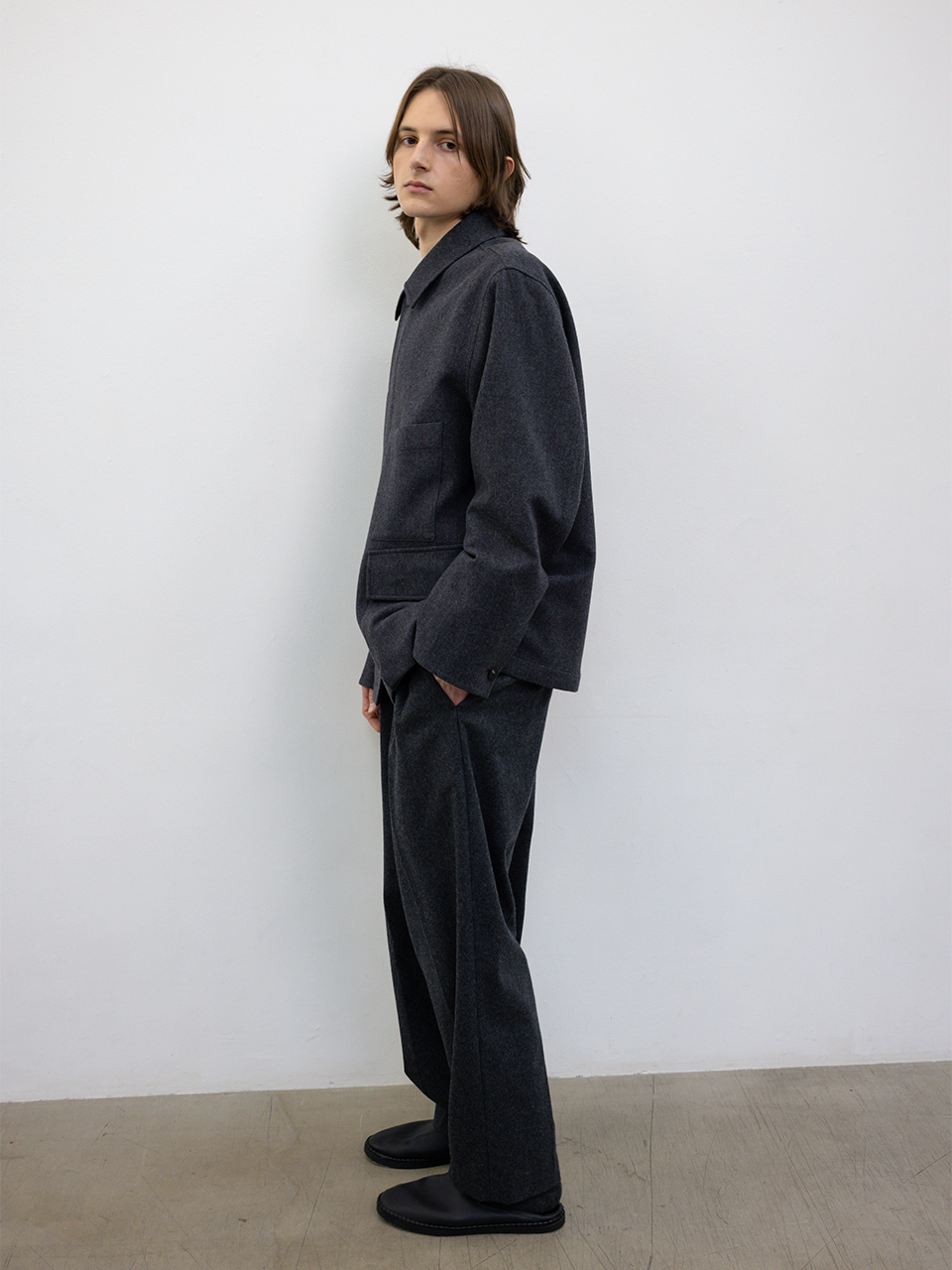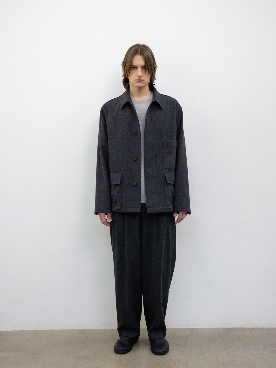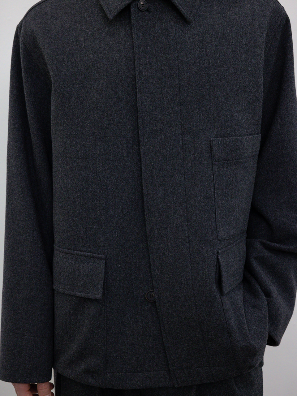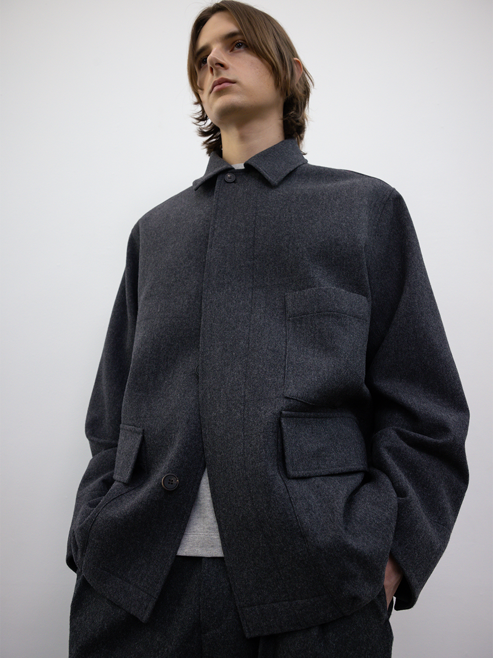 견고한 밀도감이 돋보이는 오스트레일리아산 메리노 울 원단으로 제작한 자켓입니다. 클래식한 필드 자켓 디자인을 현대적으로 재해석한 세미 오버사이즈 실루엣에 프론트 장식 스티치와 구조적인 아웃포켓으로 포인트를 주었습니다. 로고 각인된 소뿔 단추와 가죽라벨 그리고 개발한 심볼 금속 장식으로 마무리하였습니다. 46 어깨 55CM 가슴 63.5CM 총장 73.8CM 밑단 64CM 소매 63CM 소매부리 15.5CM 48 어깨 57CM 가슴 66CM 총장 75CM 밑단 66.5CM 소매 64CM 소매부리 16CM 50 어깨 59CM 가슴 68.5CM 총장 76.2CM 밑단 69CM 소매 65CM 소매부리 16.5CM 치수는 재는 위치에 따라 1-3cm 차이 생길 수 있습니다. 어두운 원단은 염색되었기 때문에 밝은 아이템과 착용 시 주의 부탁드립니다. DRY CLEAN ONLY 181cm 마른체형 모델 48 SIZE 착용
